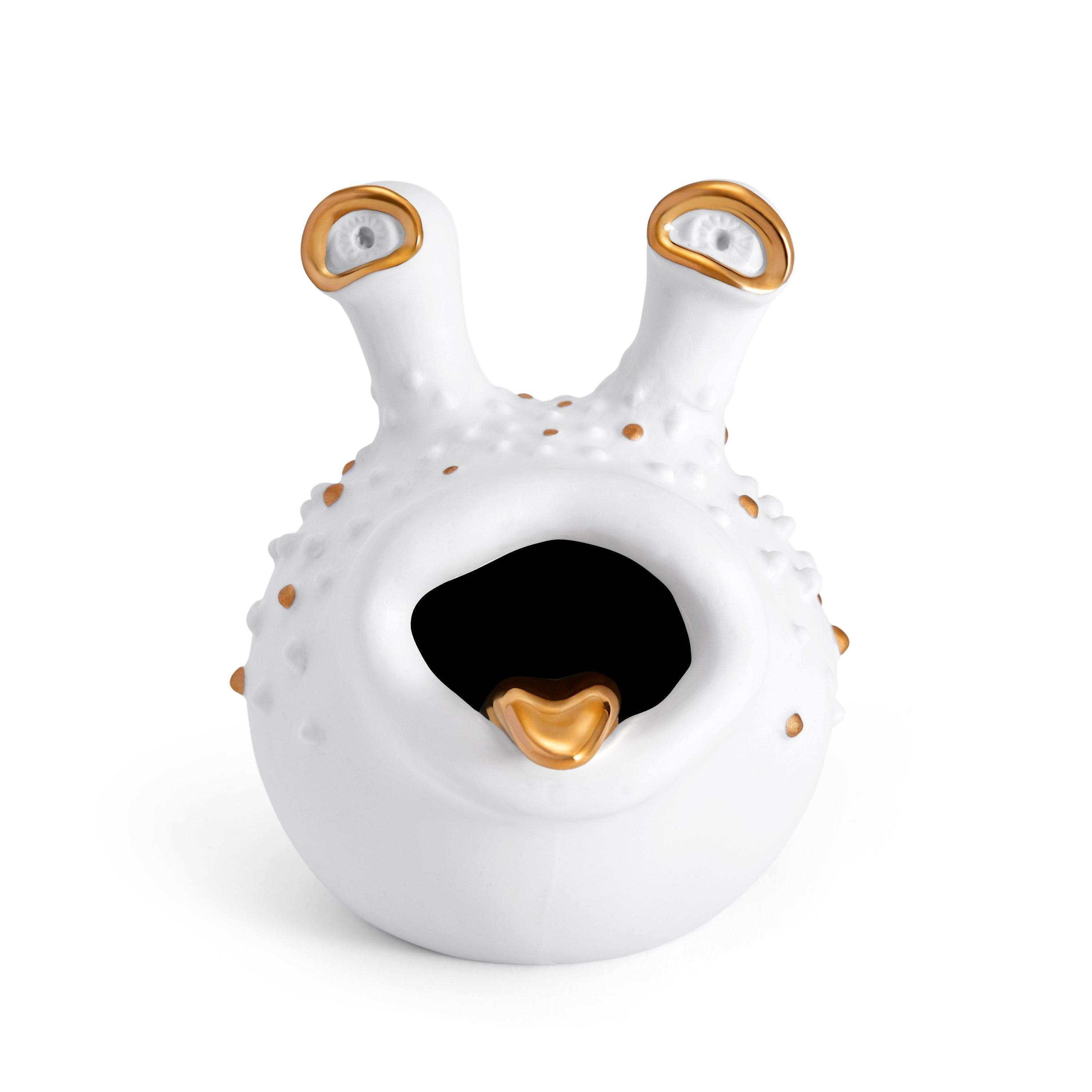 Return to the sumptuous fantasy world with the second chapter of L'OBJET Haas Brothers, where new creatures await. This hand-crafted porcelain ashtray is delicately accented with 24K gold.
