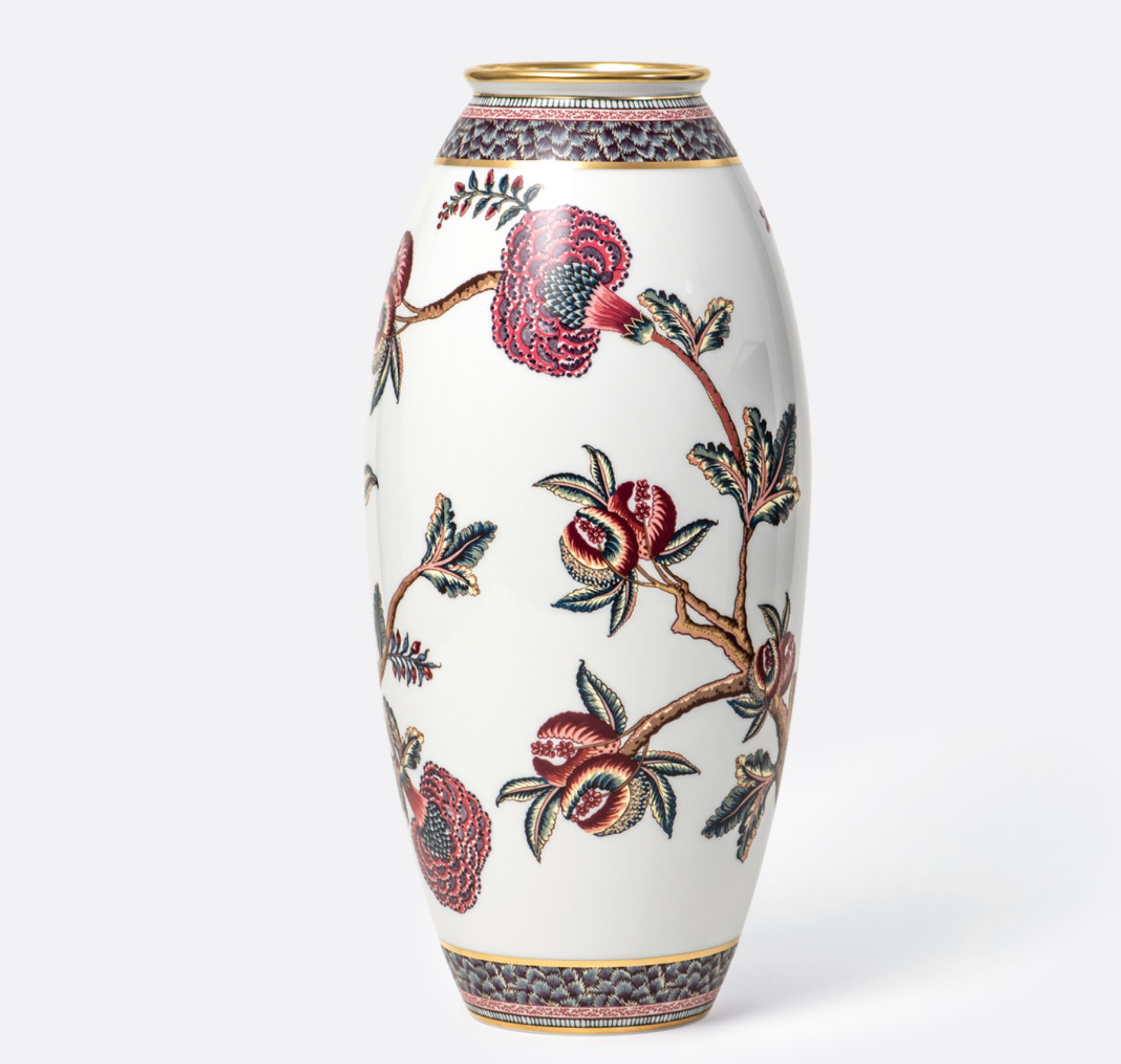 The Bernardaud Braquenié Vase is a masterpiece born from the collaboration between two heritage Maisons, Bernardaud and Pierre Frey. This exquisite porcelain vase reimagines 19th-century textile artistry from the legendary Braquenié archives, featuring the iconic Grand Corail and La Ménagerie patterns. Adorned with lush floral motifs, graceful tree branches, and exotic animals, it captures the timeless charm of Indian palampores, blending history, craftsmanship, and color in perfect harmony.