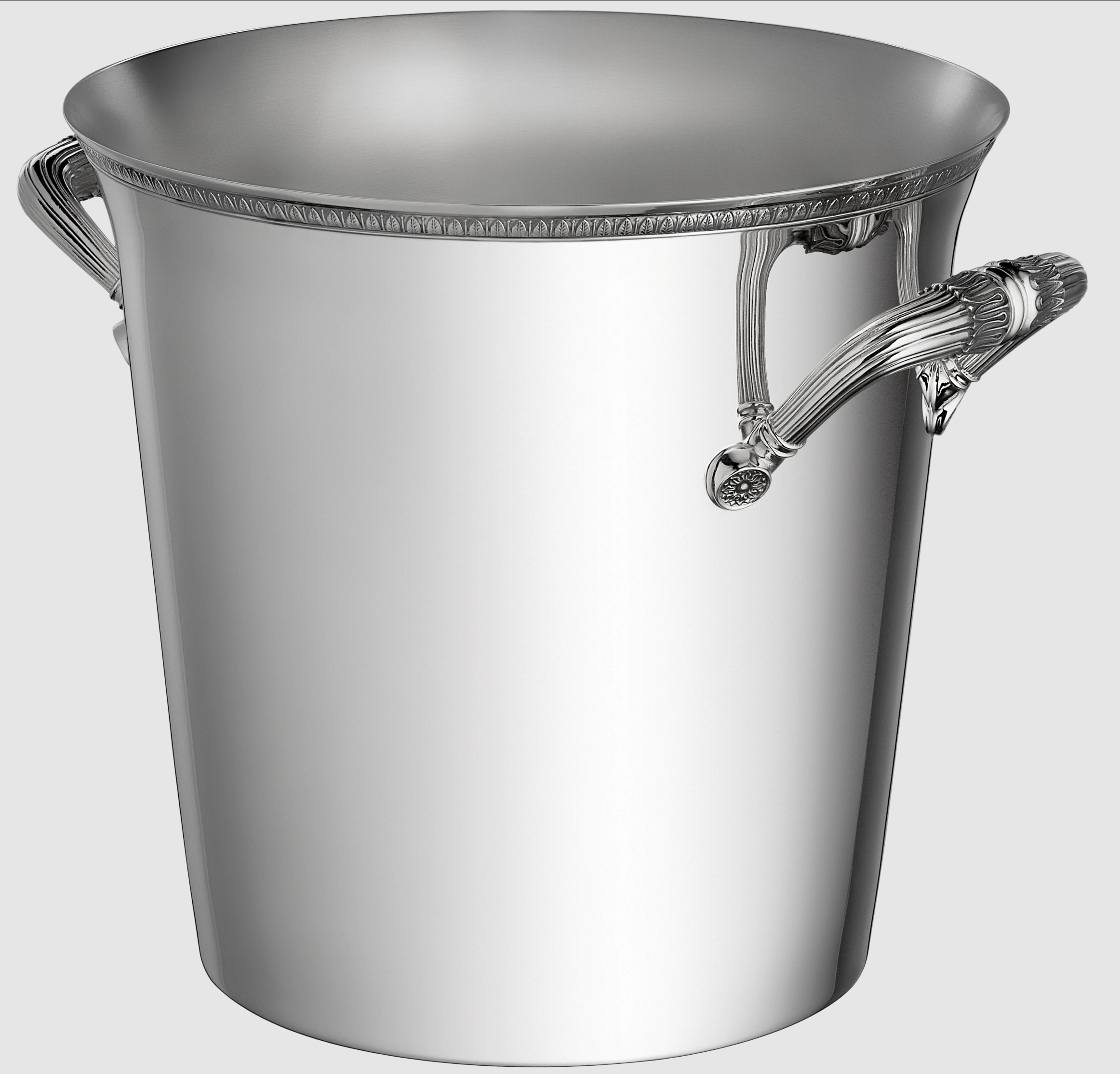 Elevate your entertaining game with the Christofle Malmaison 2-Bottle Champagne Cooler Bucket. Featuring handles on two sides, this cooler accommodates two bottles, combining functionality with elegance. Its design, inspired by the historic Malmaison pattern, showcases an Empire-style frieze of palm and lotus leaves, reflecting the refined Parisian heritage associated with Napoleon and Empress Josephine. Ideal for sophisticated bar service or as a distinguished gift for housewarmings, weddings, or special occasions.