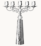 This silver-plated Jardin D’Eden candelabra by Christofle, designed by Marcel Wanders, features an intricate pattern of interlacing vines, plants, and flowers inspired by the legendary Garden of Eden. Crafted to hold five candles, it brings elegance to any setting and home decor. The designer’s signature adds authenticity to this refined decorative piece, making it a distinguished addition to your collection.