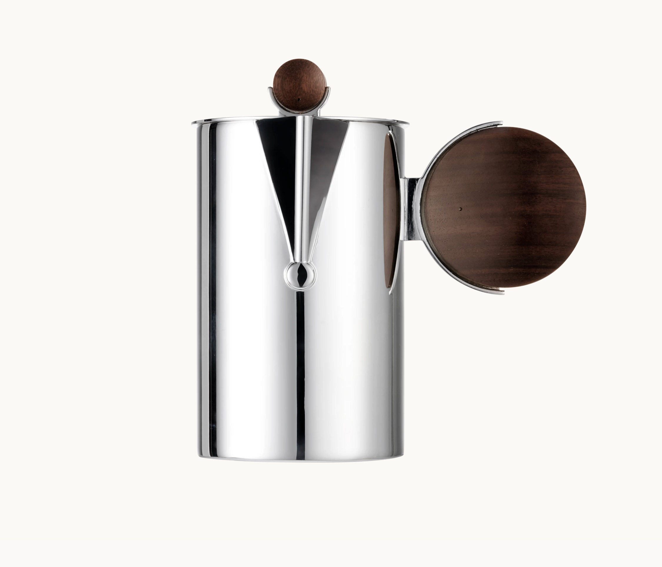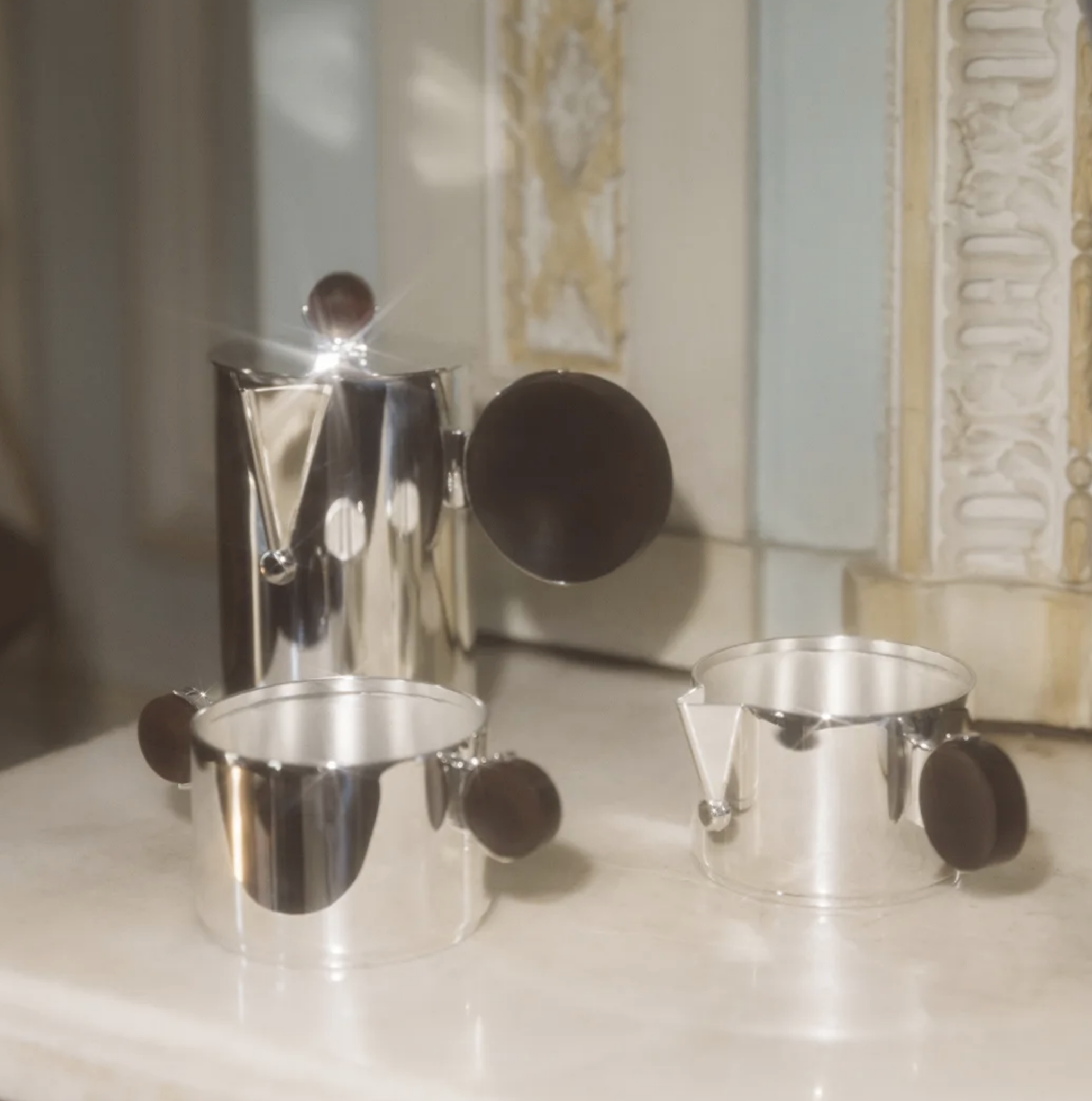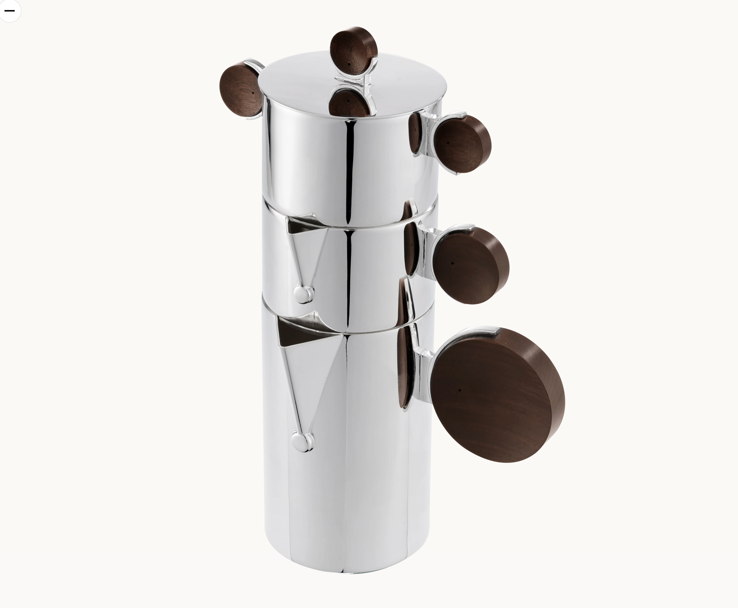 The Christofle Fjerdingstad Gigogne Coffee Pot's striking style not only serves as a functional coffee pot but also makes a sophisticated statement piece. It exemplifies the bold design characteristic of the Modernist movement. Ideal for collectors and connoisseurs, this piece marries artistic heritage with everyday elegance. This is a set consisting of a coffee pot, creamer, and sugar pot that conveniently stack on top of each other making it both easy to store and breathtaking to serve coffee with.