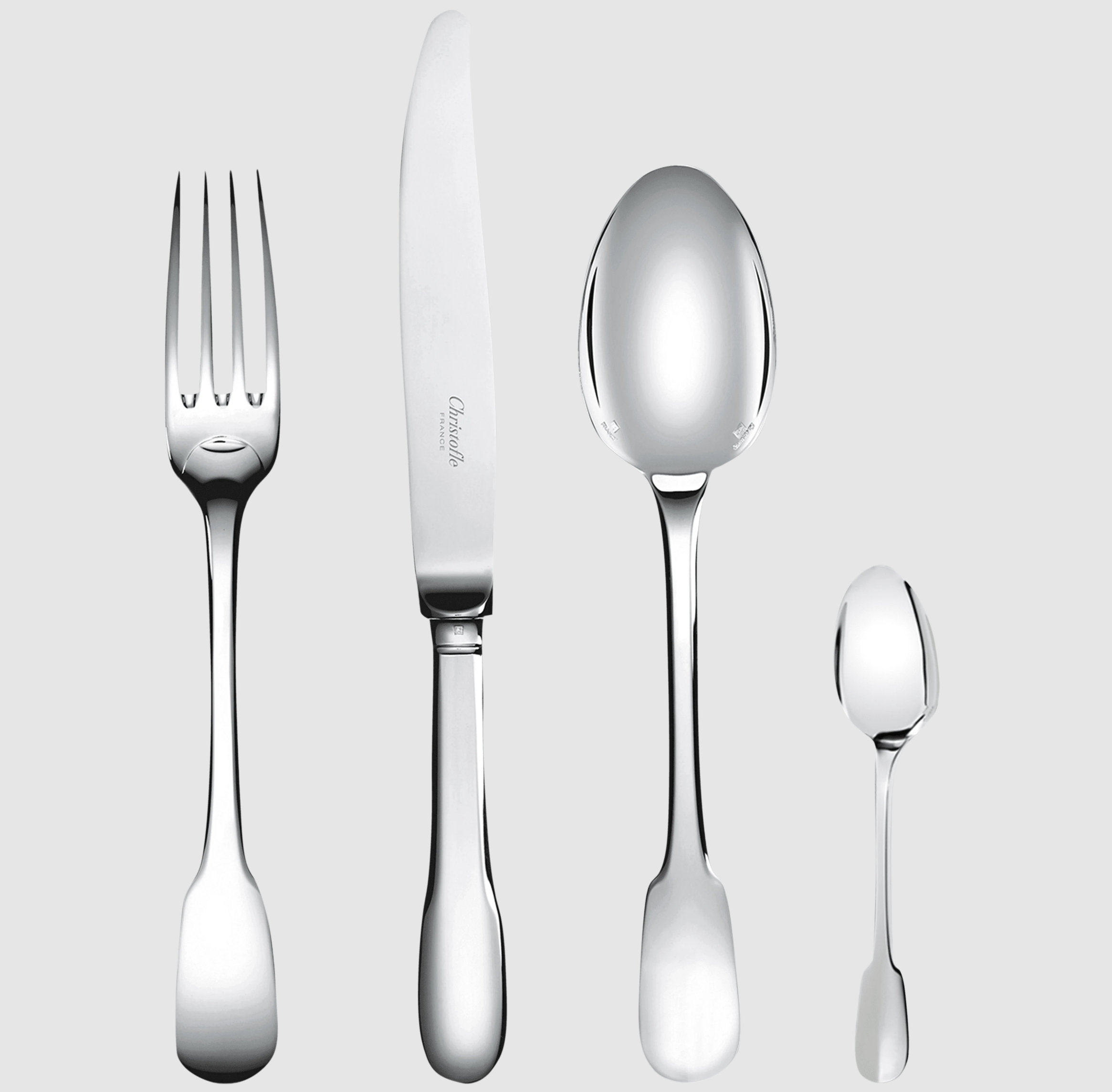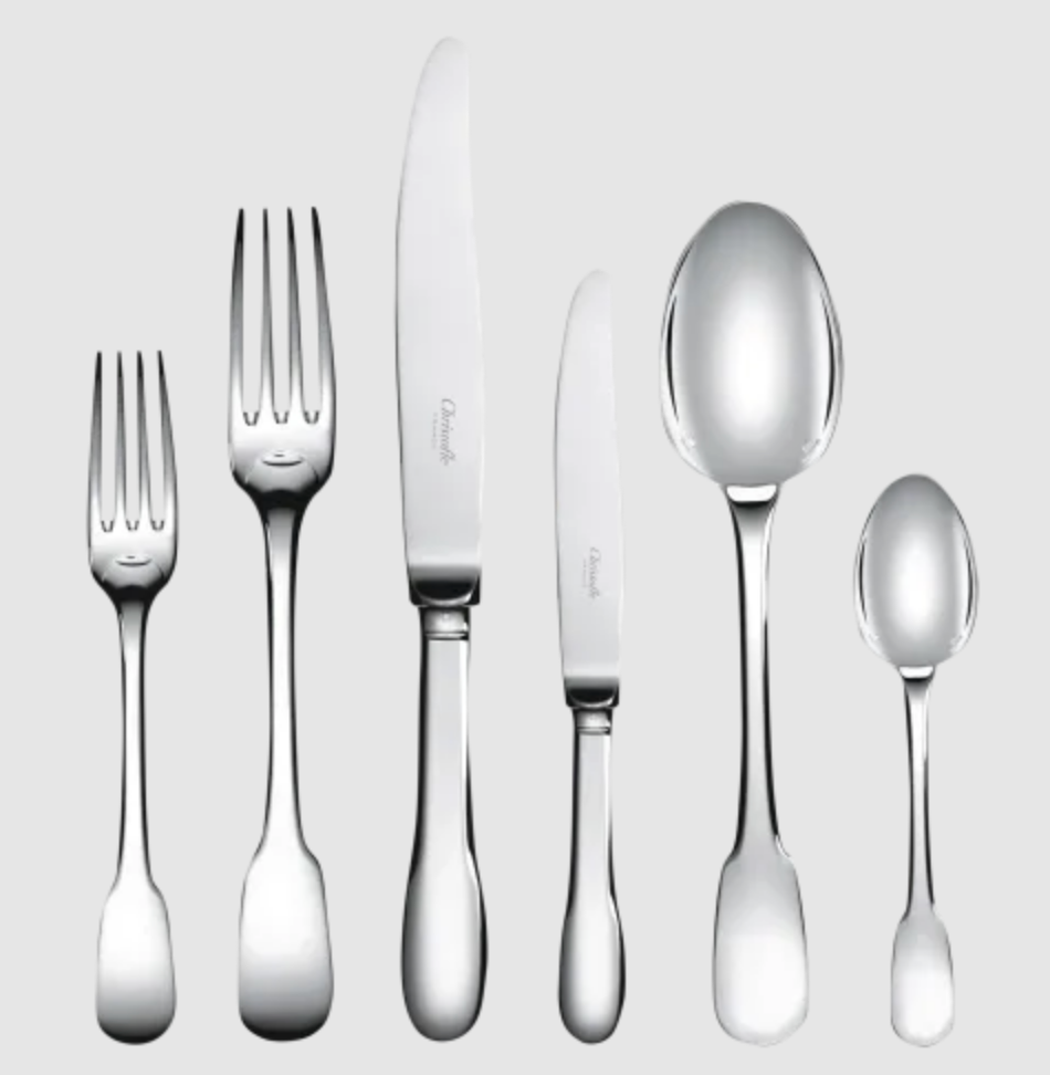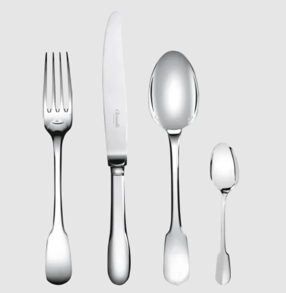 Christofle Cluny flatware is a great classic of French cutlery models inherited from the 18th century. It appeared in the first catalog of the Christofle house in 1862. Its current form, slightly redesigned by the Christofle studio in 1964, magnifies its sober but soft elegance.