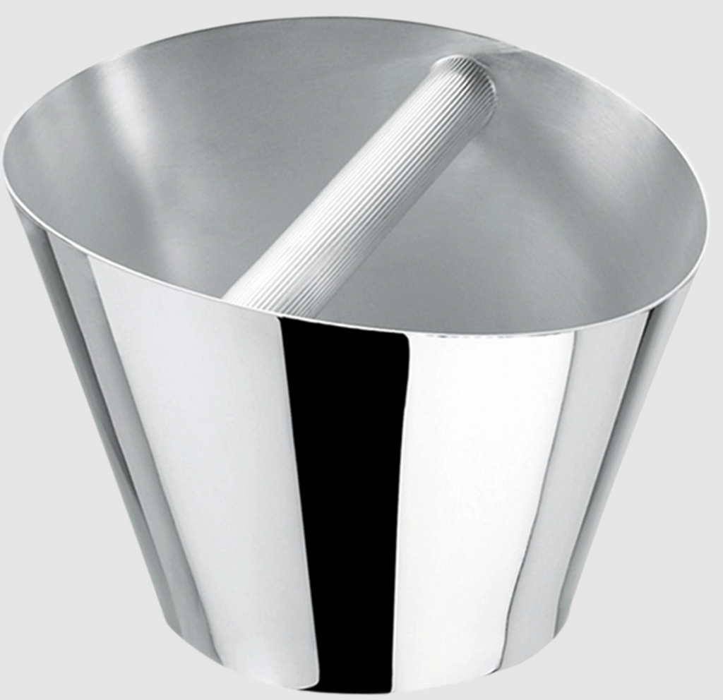 This set of asymmetrical two-bottle champagne cooler and stand from the Christofle K+T collection combines design with practical function. Crafted through the collaboration of designer Adam D. Tihany and chef Thomas Keller, it features a striking blend of mirror-smooth and grooved edges, making it a refined centerpiece for any home bar. Ideal for cocktail parties and celebrations, it also serves as a breathtaking gift for housewarmings, hostesses, engagements, or weddings.