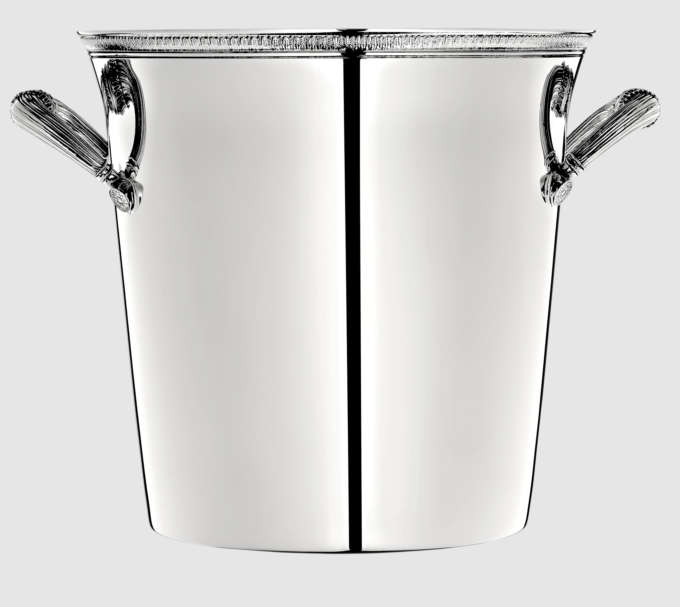 Elevate your entertaining game with the Christofle Malmaison 2-Bottle Champagne Cooler Bucket. Featuring handles on two sides, this cooler accommodates two bottles, combining functionality with elegance. Its design, inspired by the historic Malmaison pattern, showcases an Empire-style frieze of palm and lotus leaves, reflecting the refined Parisian heritage associated with Napoleon and Empress Josephine. Ideal for sophisticated bar service or as a distinguished gift for housewarmings, weddings, or special occasions.