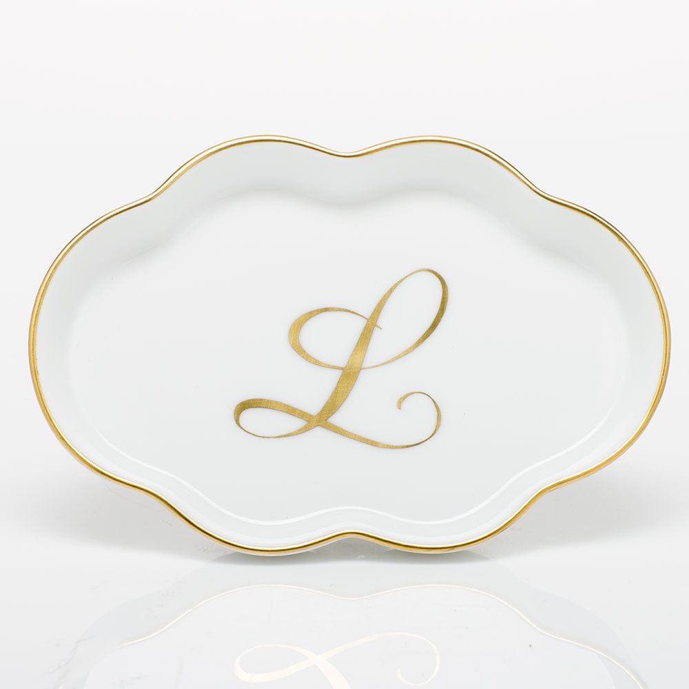 Herend Herend Monogram Scalloped Tray with Monogram L