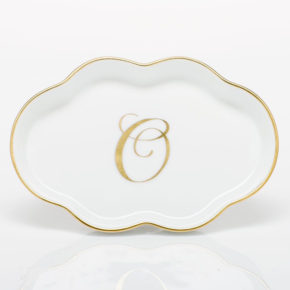 Herend Herend Monogram Scalloped Tray with Monogram O