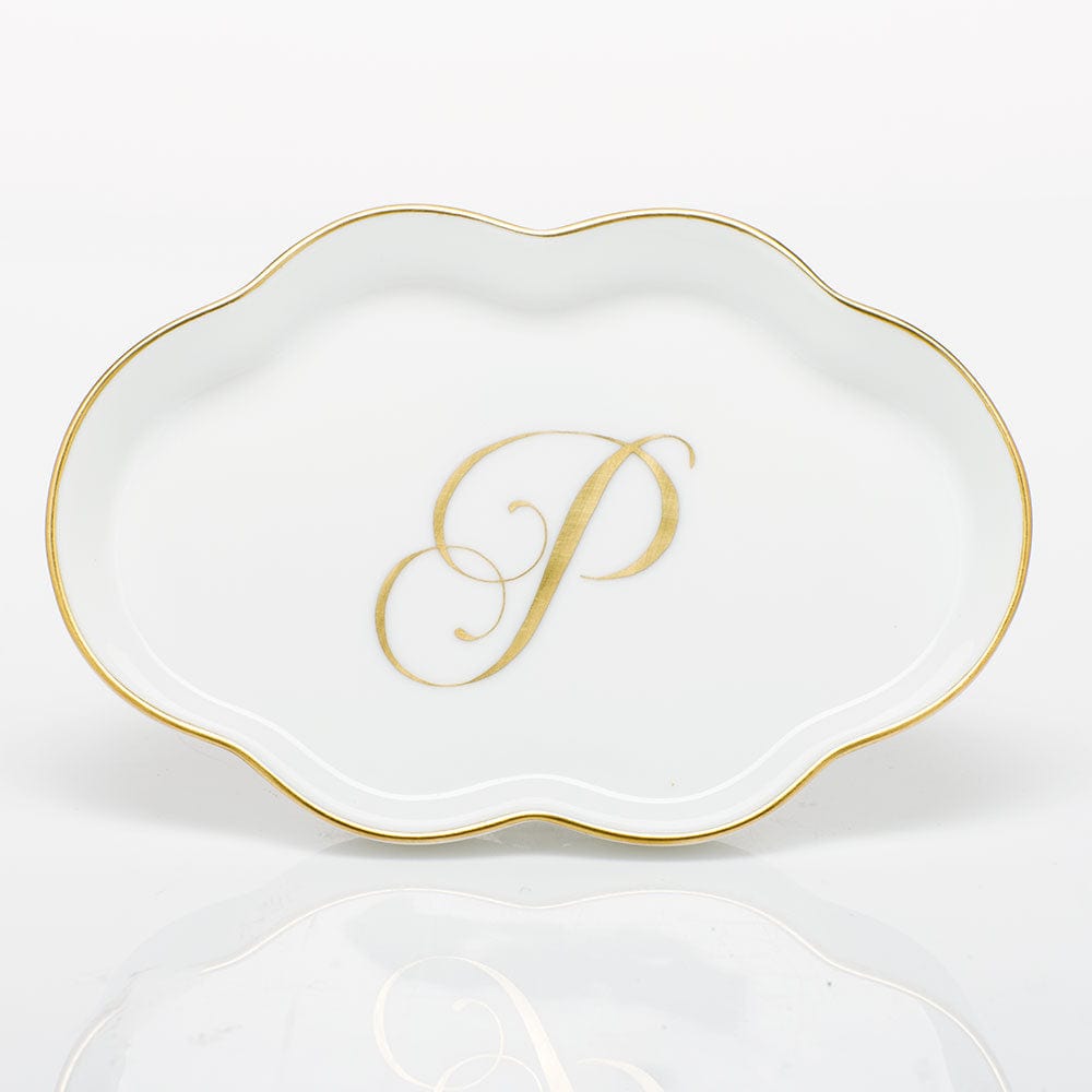 Herend Herend Monogram Scalloped Tray with Monogram P