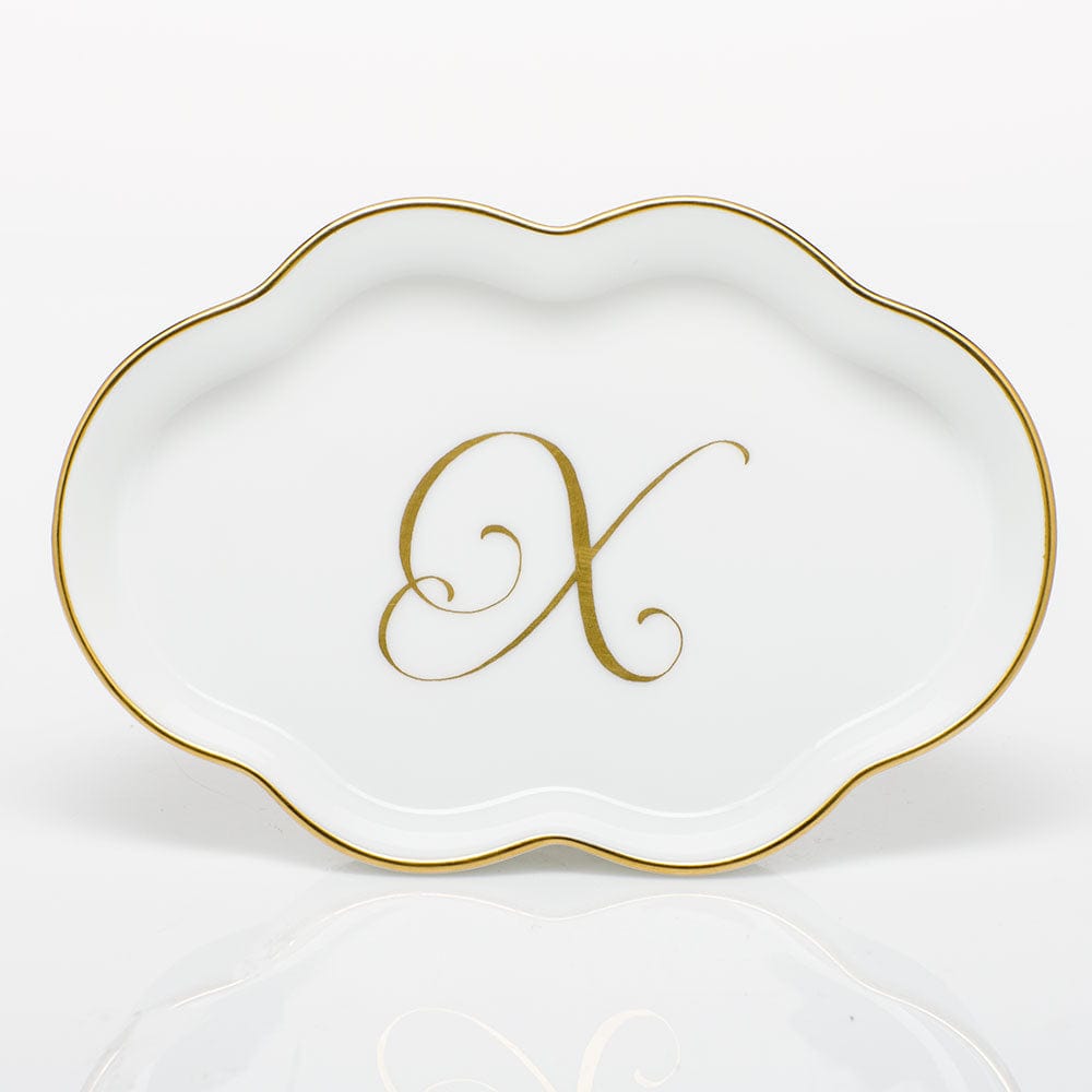Herend Herend Monogram Scalloped Tray with Monogram X