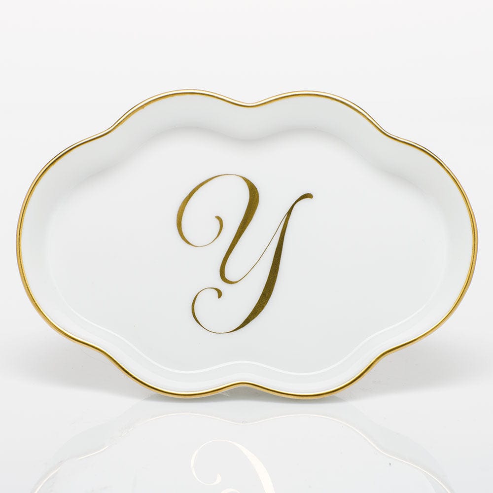 Herend Herend Monogram Scalloped Tray with Monogram Y