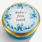 Introducing the Baby's First Tooth Blue enamel box by Halcyon Days Enamels, a perfect keepsake for your little one's milestone.