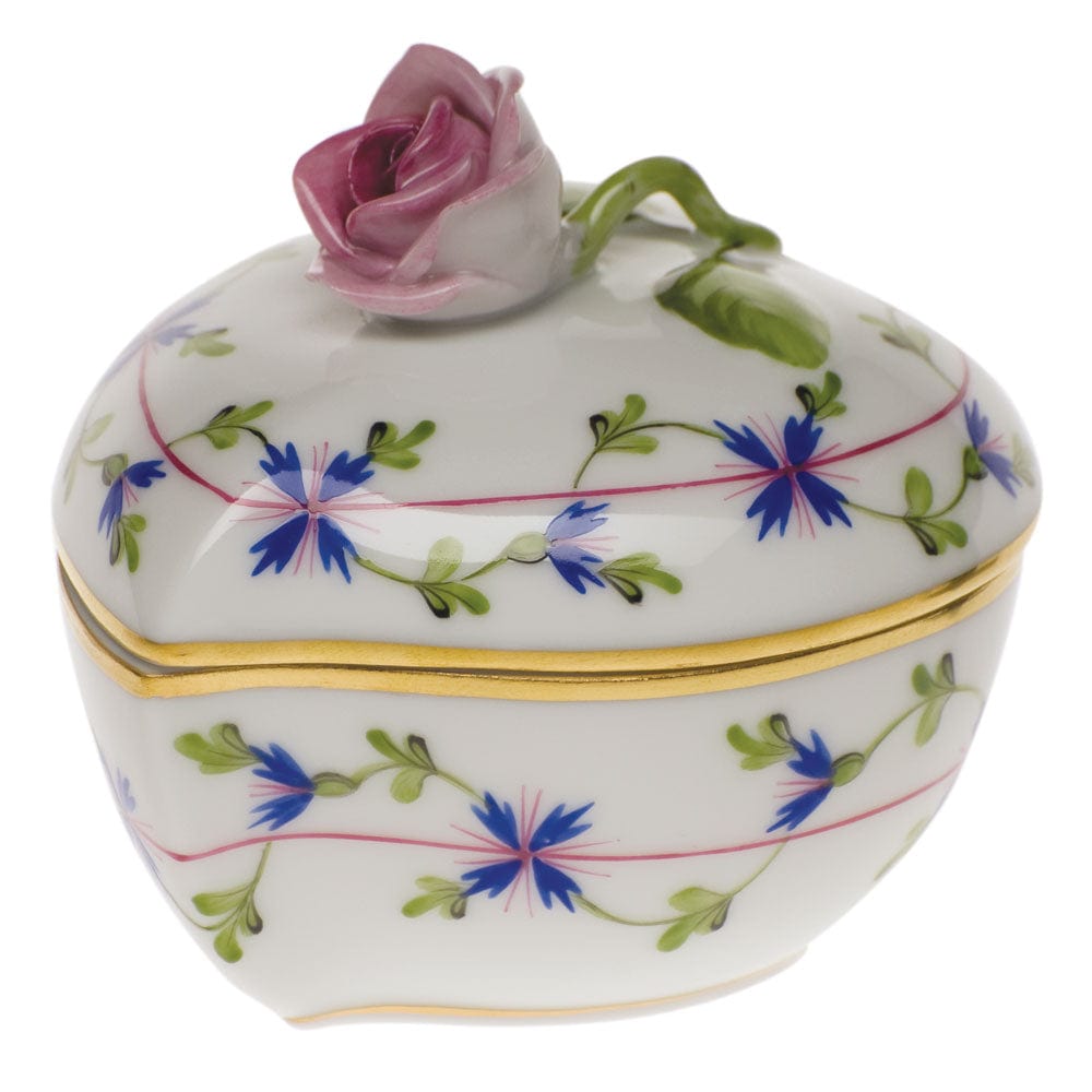 Herend Blue Garland Heart Bonbon with Rose