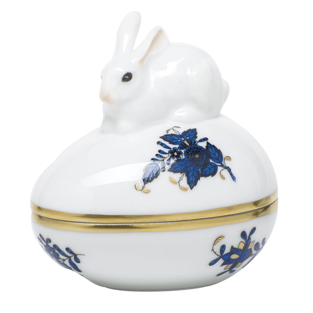 Herend Egg Chinese Bouquet Black Sapphire Bonbon with Bunny