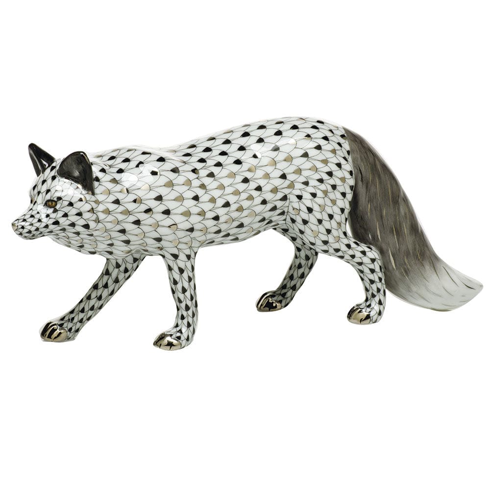 Limited Edition Size = 150 The Achomawi people of southern California have a legend that the silver fox was created from fog. A fitting description for this beautiful animal whose color can vary from completely black (except for the tip of its tail) to a more cinereous color. As if still dripping from his formation in cloud of suspended water droplets, the artists at Herend have used a spectrum of moody fishnet colors to create this striking addition to the Reserve Collection.