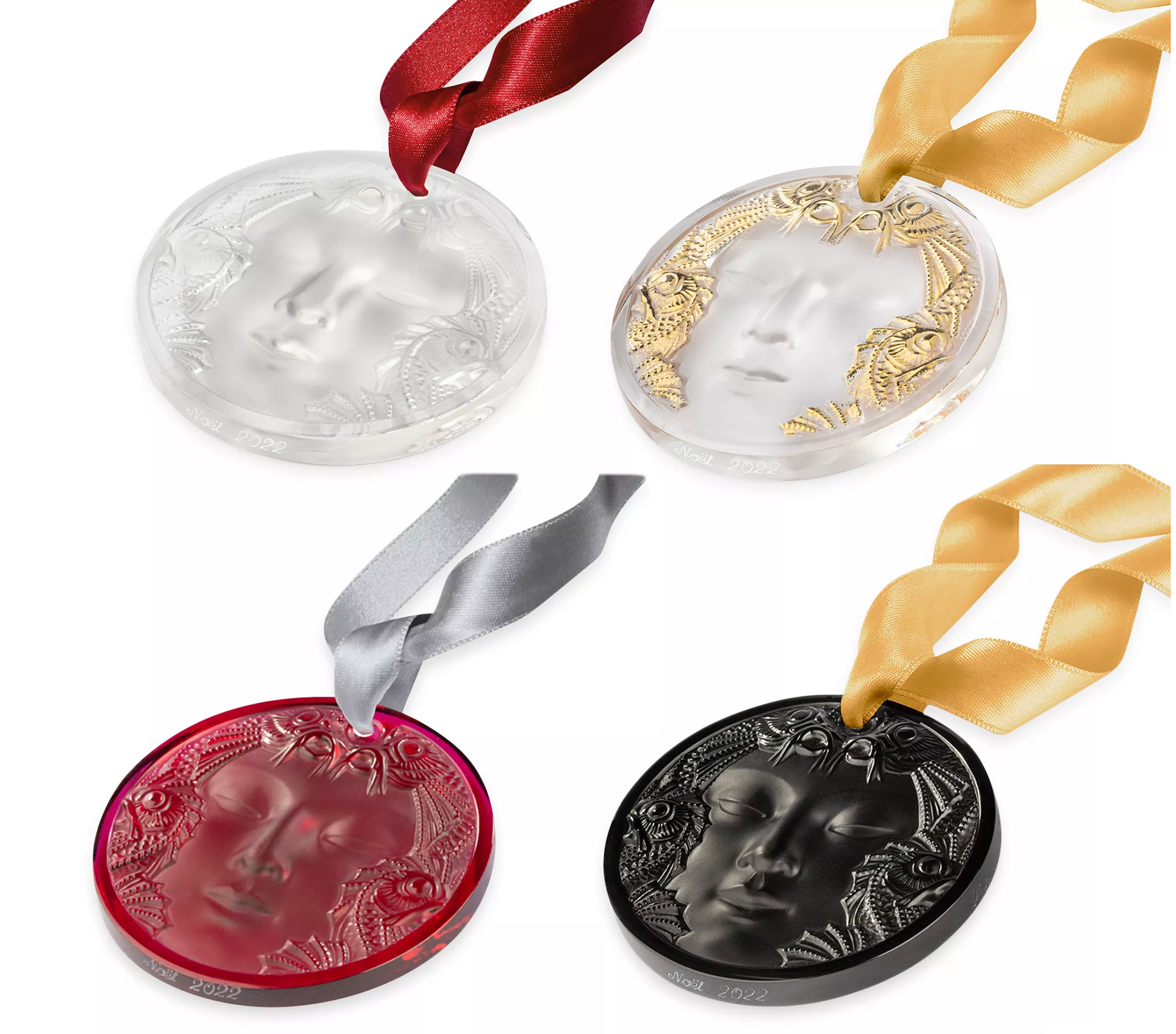 This exquisite ornament featuring Rene Lalique's iconic Masque de Femme (Female Mask) motif makes a timeless gift and stunning addition to any Christmas tree. Crafted in France, it is a perfect blend of tradition and originality. This ornament design was first presented in 2022.