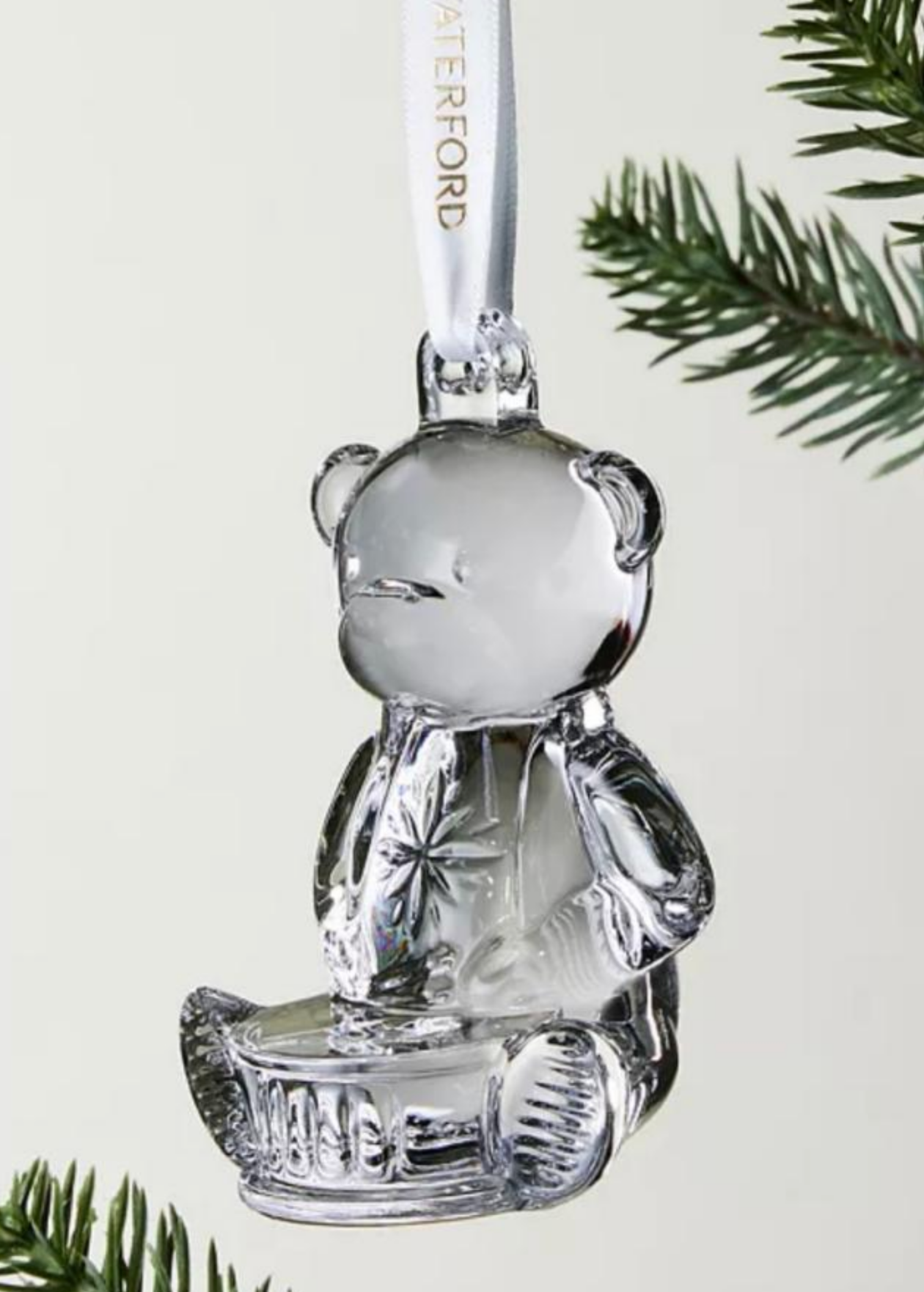 Perfect Christmas Gift: Waterford Crystal Baby's First Bear Ornament. Beautifully presented in a signature Waterford box and a cloth bag, this ornament will be a favorite on the Christmas tree and will remind the family of how much their child has grown. Not dated.