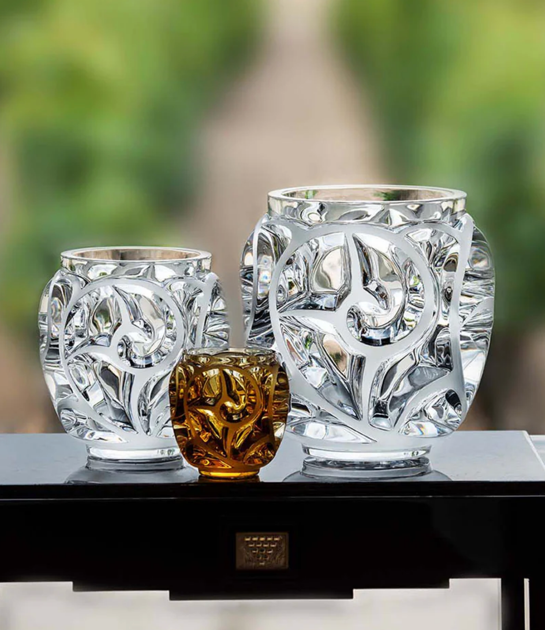 The Lalique crystal Tourbillons vase, with its abstract design and swirling curves, draws inspiration from the fern blossom. The interplay of light and shadow on the crystal's surface creates a mesmerizing effect, making it a captivating centerpiece.