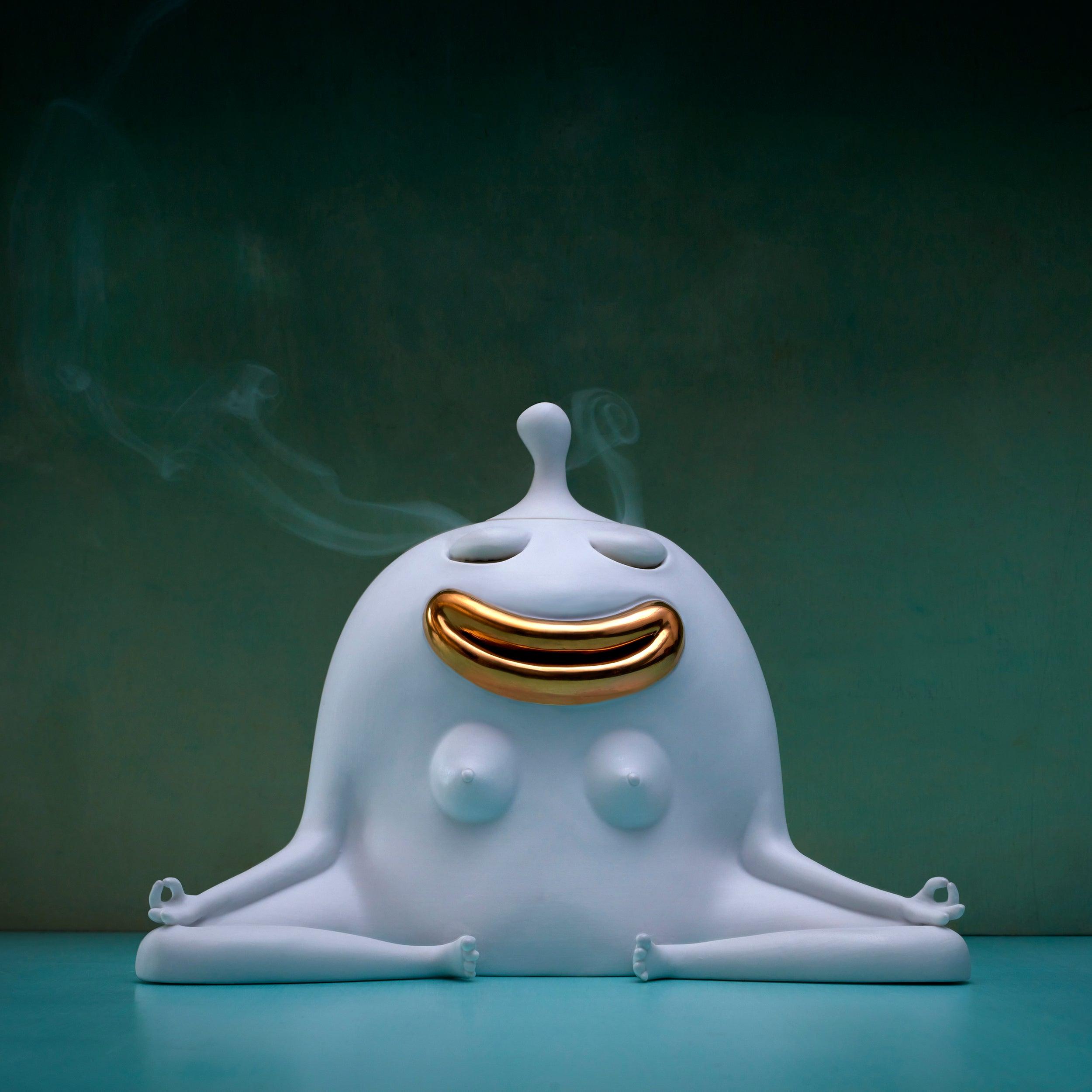 This otherworldly beacon of peace and tranquility in goddess-like form by L'Objet is individually cast from porcelain. When incense is lit and placed inside, smoke wafts from her eyes, mouth, and butt, in a true demonstration of the Haas Brothers' cheeky humor.