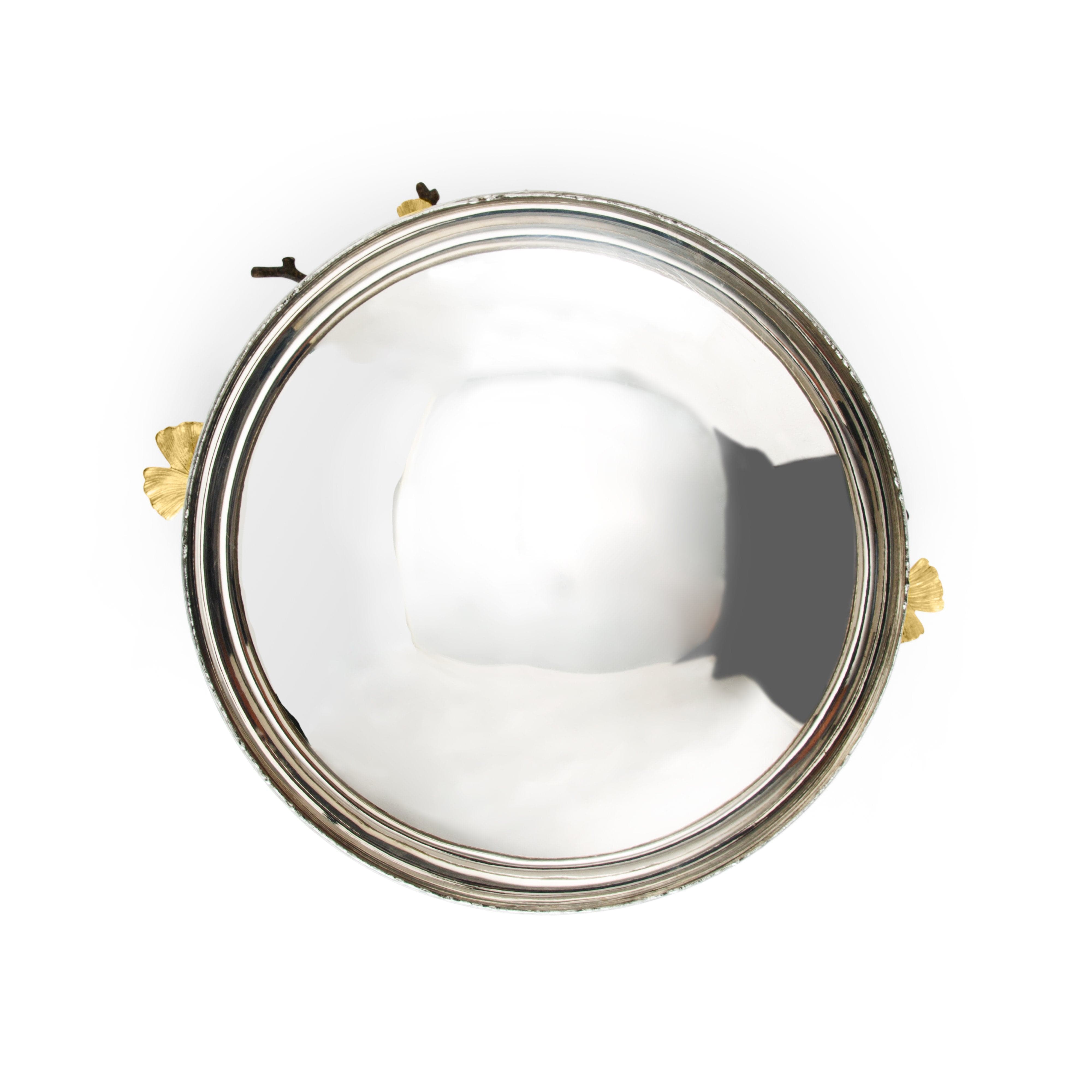 The Butterfly Ginkgo Collection celebrates the representation of flora as fauna. Michael's fascination with a particular type of ginkgo tree , the Ginkgo Biloba, or "Butterfly Ginkgo", which grows with a double leaf reminiscent of a butterfly's wings, gave rise to a fantasia image of the plant. Executed at the highest level of handcraftsmanship, each piece is rendered in solid brass with hand etched cocoon-shaped vessels. The pieces in the collection are a tour de force of the handcrafted process, capturing the poetic spirit that is so deeply indicative of Michael's work.
