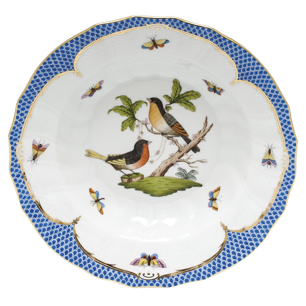 Herend Rothschild Bird Blue Rim Soup Motif 8