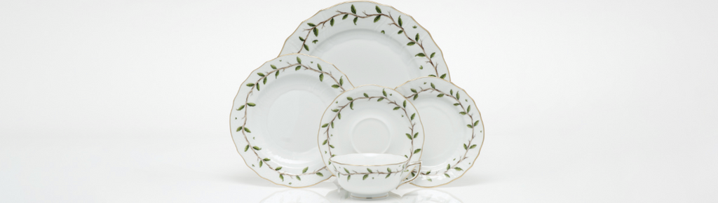 The Rothschild Garden is a Herend dinnerware collection that evolved from the iconic Rothschild Bird design. In this pattern, the dinnerware artists focus more on the quiet beauty of nature. With the soft garland of leaves, delicate vines in warm browns, and lush foliage, this Herend porcelain collection preserves the essence of the original Rothschild tale. These pieces perfectly complement all the other Herend collections. If you are looking for a more subtle tableware design, these pieces will bring that to the table.