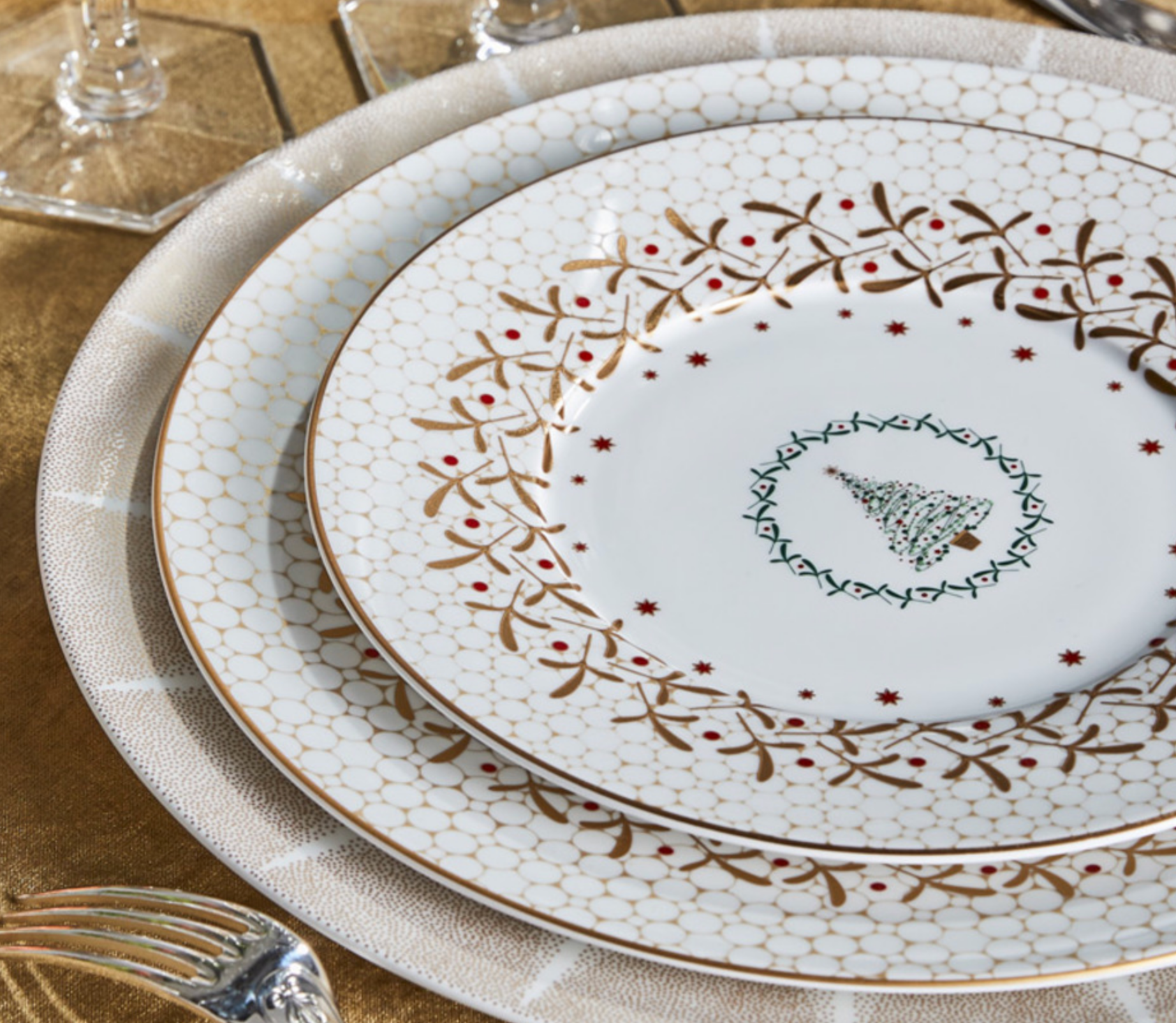Celebrate the holidays in style with these exquisite Bernardaud Noël dinner plates. Adorned with festive motifs like sparkling champagne bubbles, stars, and elegant gold accents, these holiday plates strike the perfect balance between celebratory charm and timeless elegance. These plates are ideal for presenting the main course or layering in a holiday table setting.