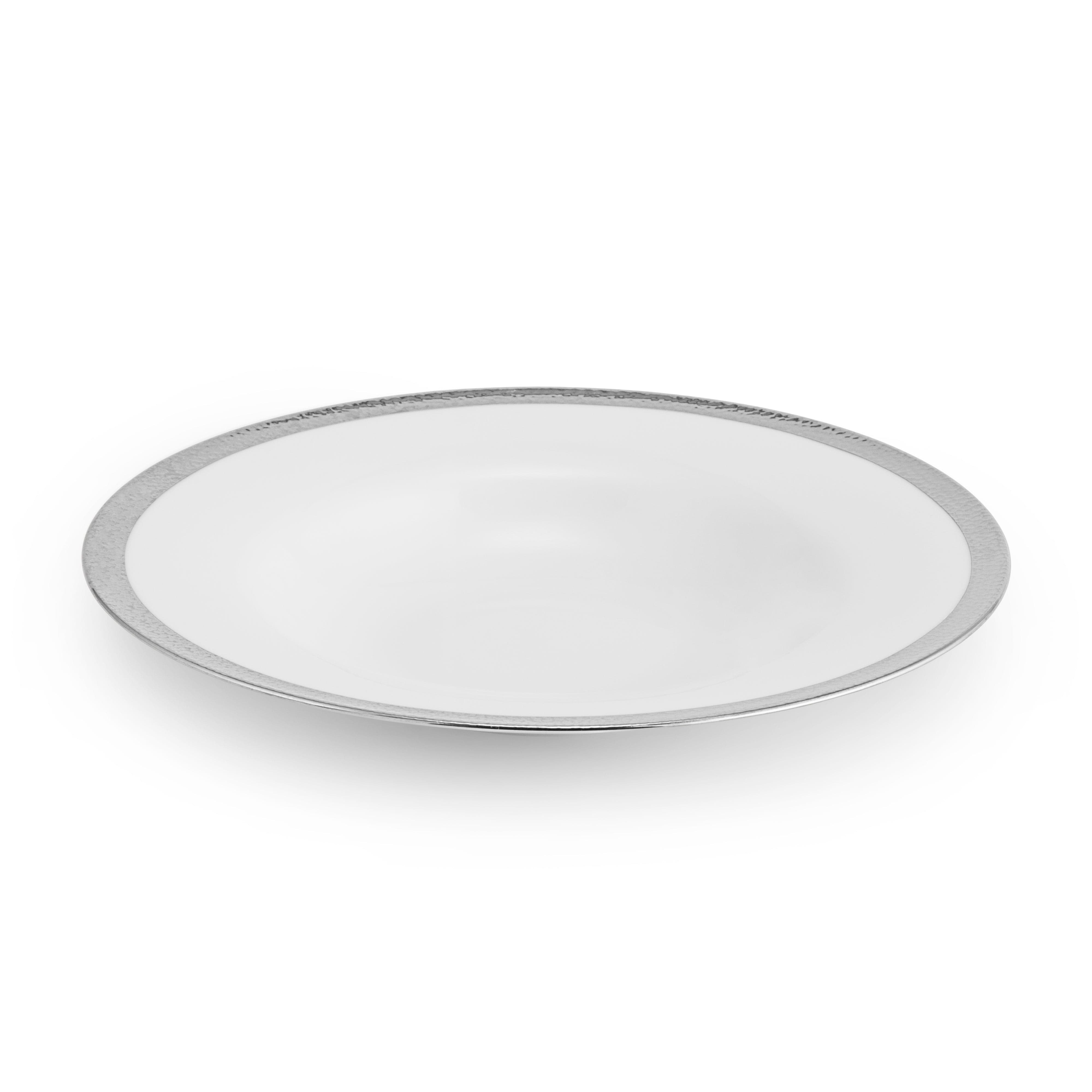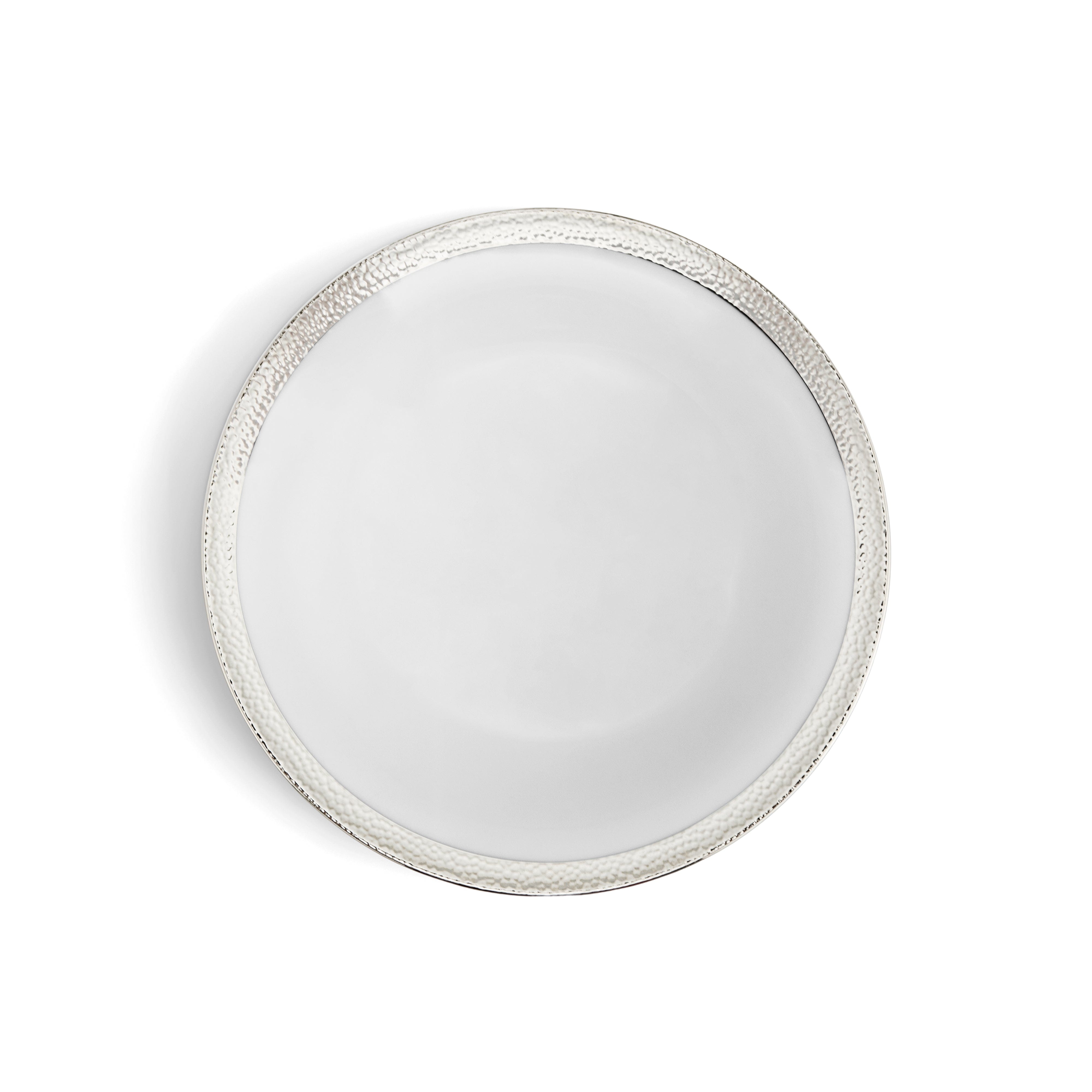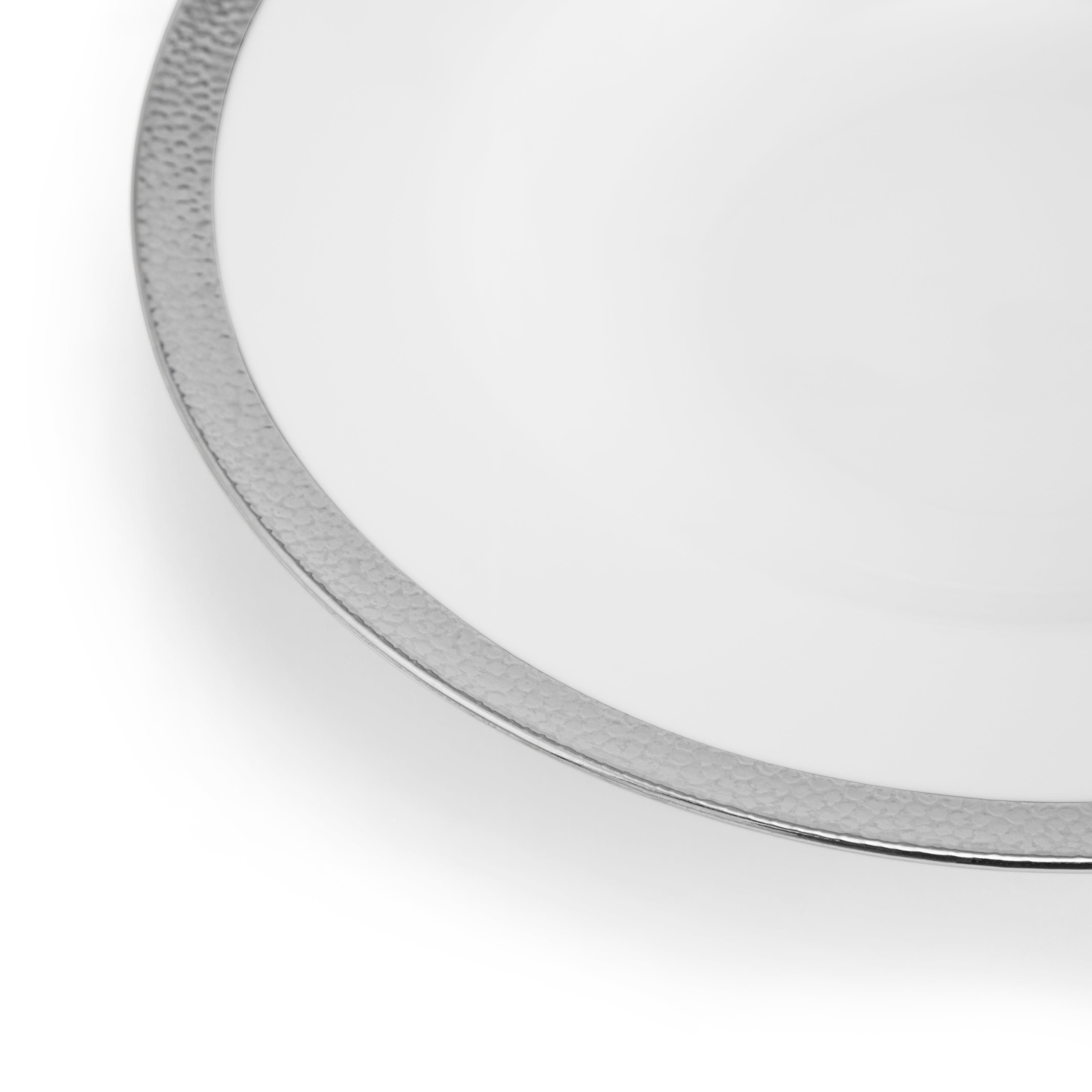 The Michael Aram Silversmith Collection is a homage to the simple beauty of the forger's craft. The texture of hammertone has been seen for millennia in metal objects, bearing silent testament to each stroke of the hammer. The surface that remains is faceted and meticulous without losing its random and organic feeling. The Silversmith Collection of fine porcelain strives to capture this mystical and timeless motif. The design is also carefully crafted in terms of color and detail to integrate perfectly with any of Michael's other dinnerware patterns. The unified body shapes used in all of the motifs make mixing and matching the patterns a seamless proposition.