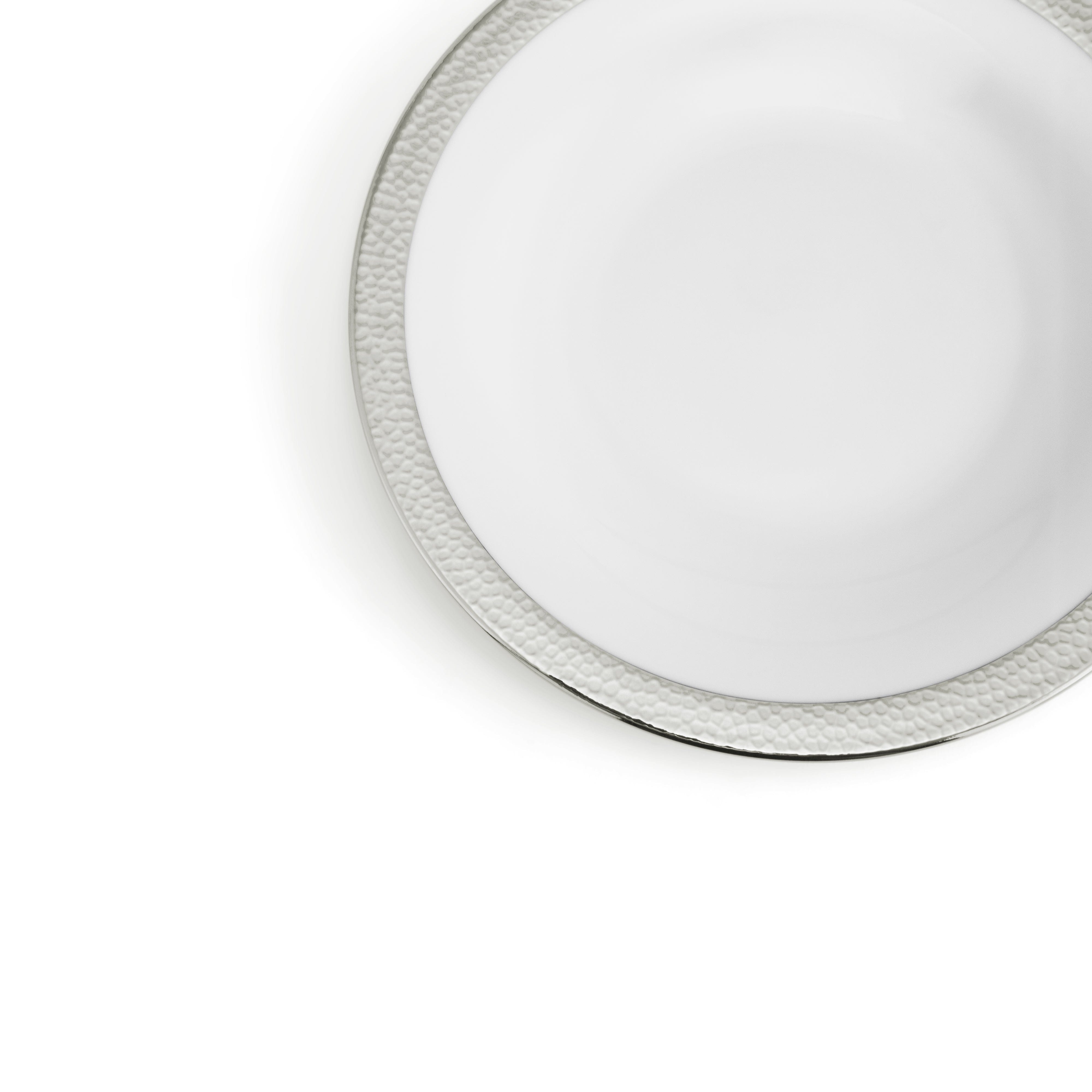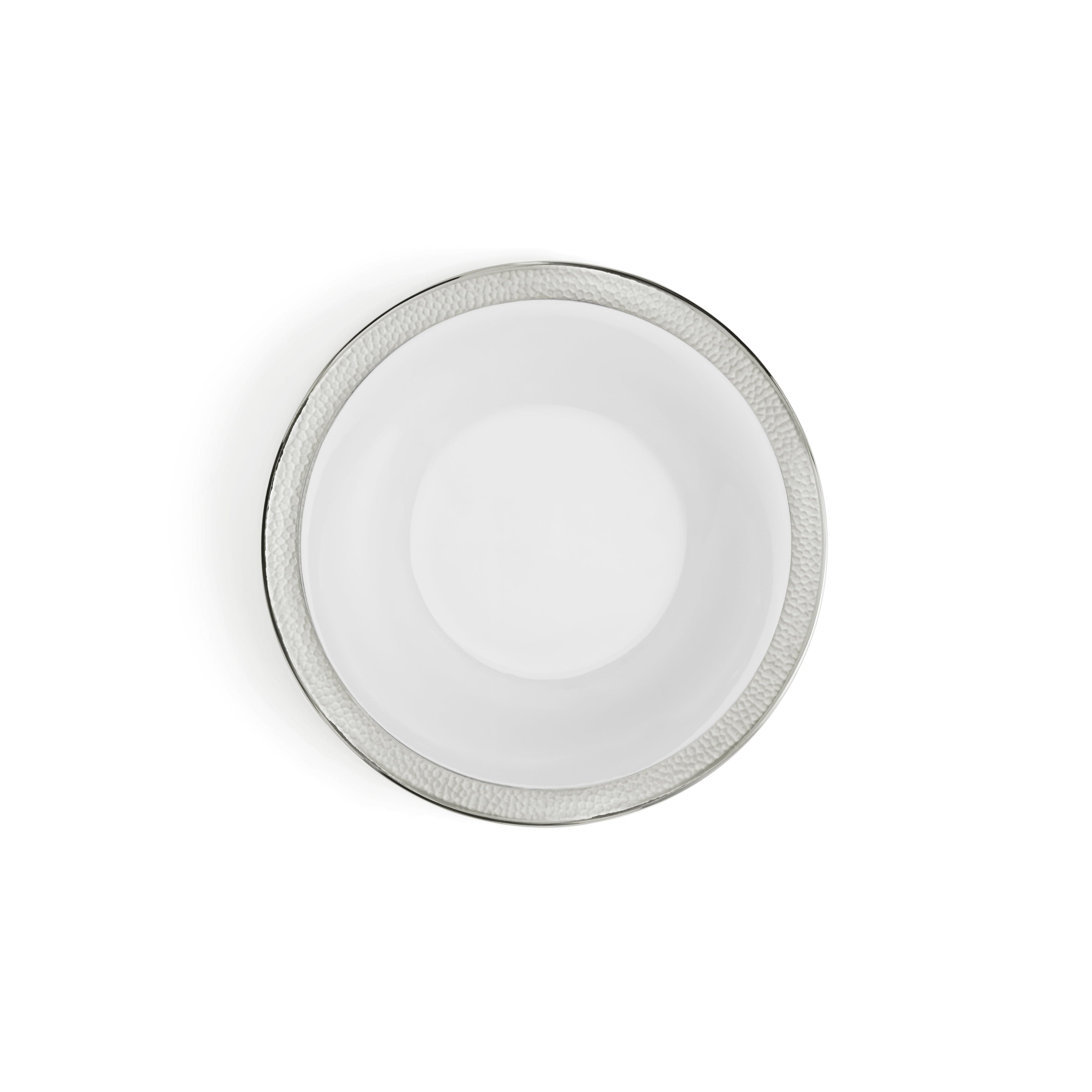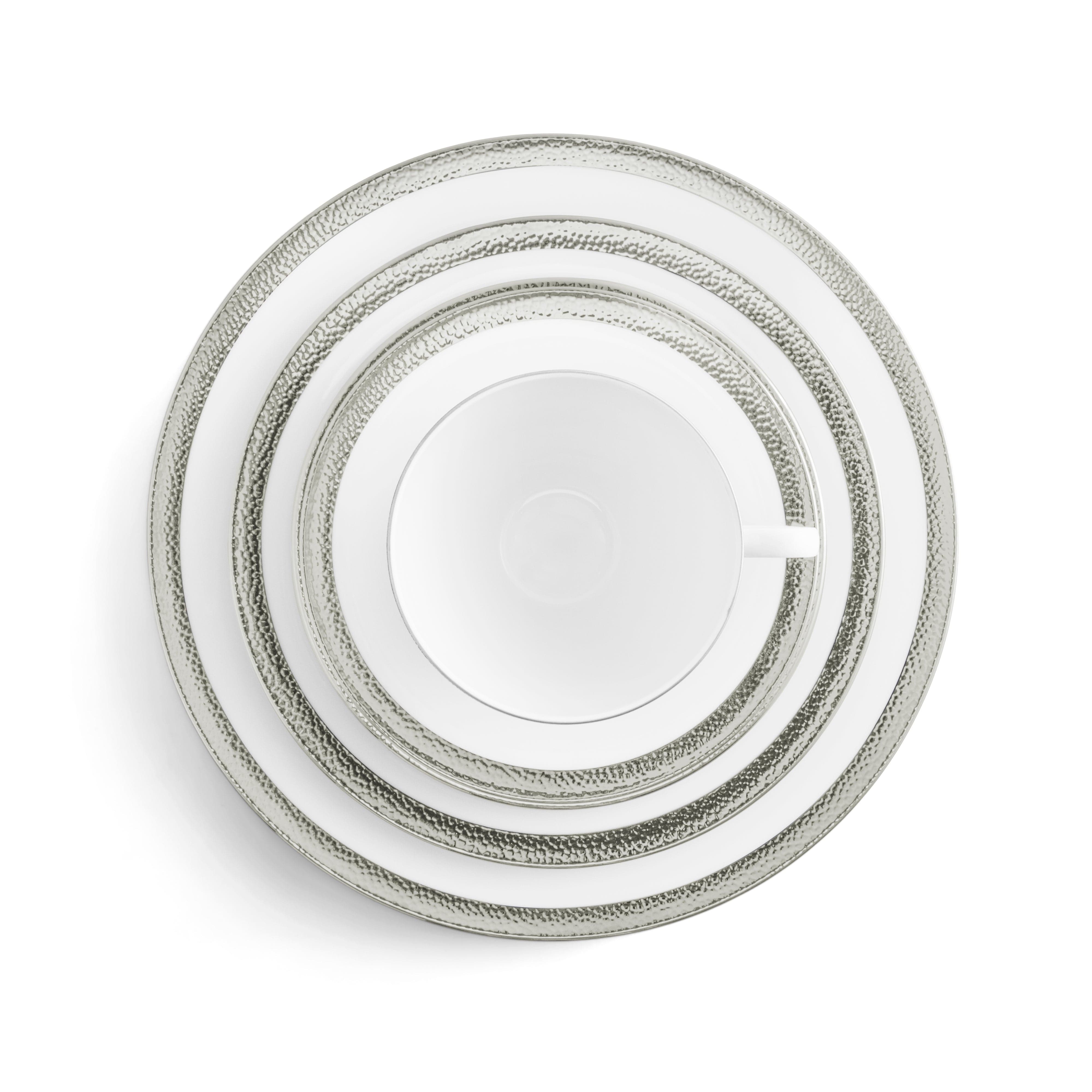 The Michael Aram Silversmith Collection is a homage to the simple beauty of the forger's craft. The texture of hammertone has been seen for millennia in metal objects, bearing silent testament to each stroke of the hammer. The surface that remains is faceted and meticulous without losing its random and organic feeling. The Silversmith Collection of fine porcelain strives to capture this mystical and timeless motif. The design is also carefully crafted in terms of color and detail to integrate perfectly with any of Michael's other dinnerware patterns. The unified body shapes used in all of the motifs make mixing and matching the patterns a seamless proposition.