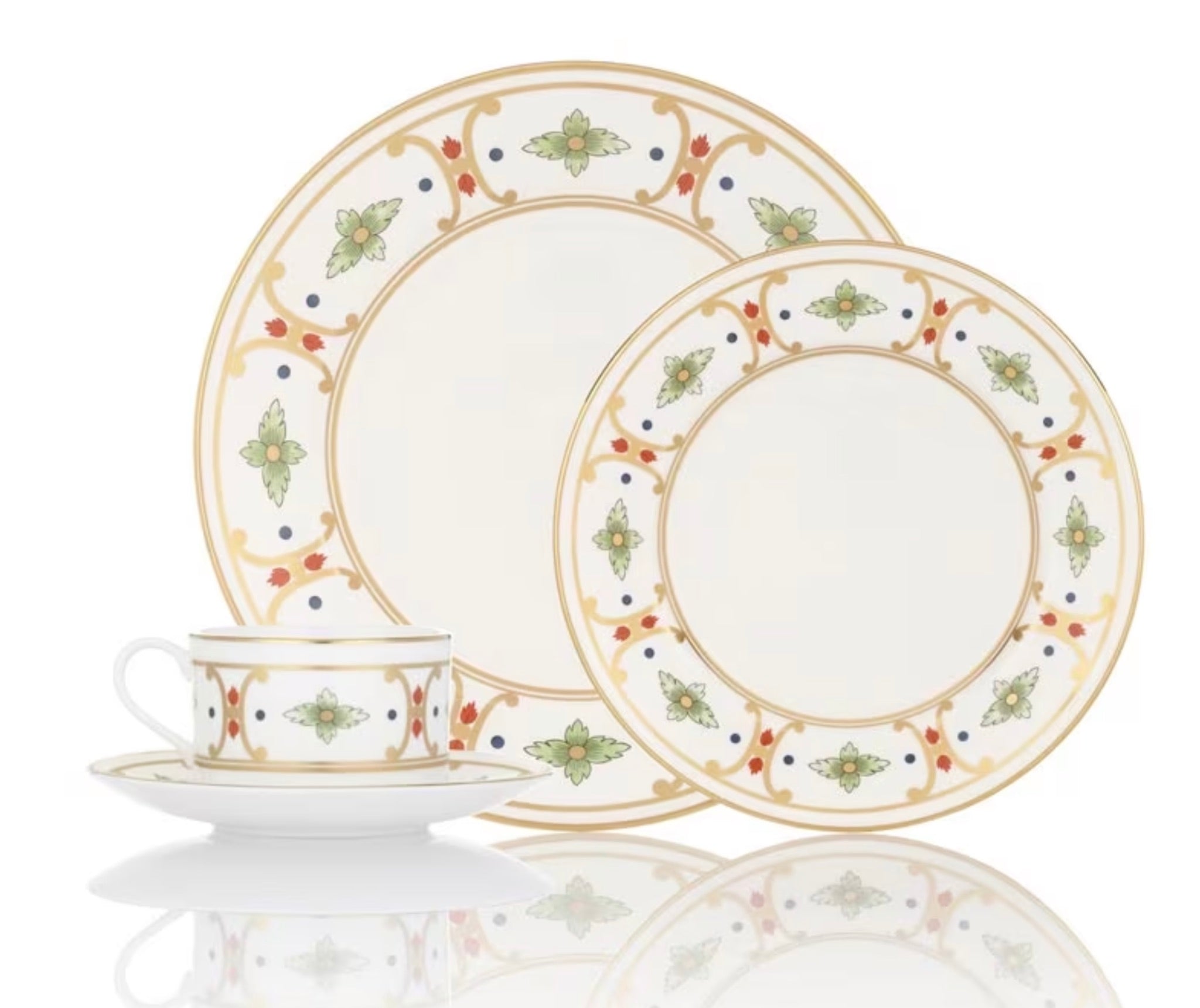 The subtle green, blue, orange and gold colors on the rim make this plate versatile to compliment your dinnerware collection but unique enough to invite people's attention to the intricate details.