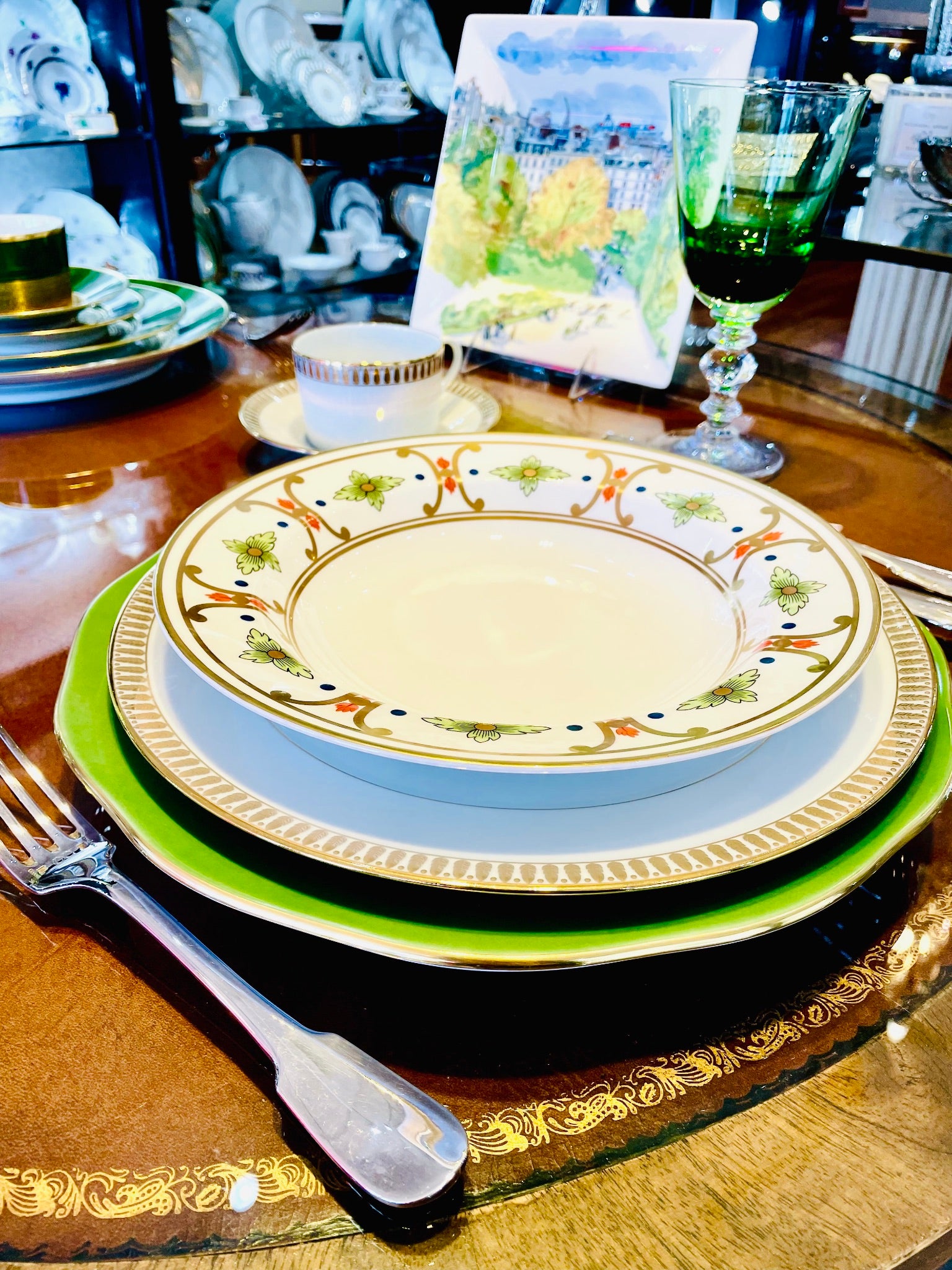 The Giralda rim soup plate by William Yeoward brings elegance to your table. Crafted from English fine bone china, this piece showcases an exquisite antique-inspired pattern with rich, sophisticated colors enhanced by luxurious gold accents. Each plate is a testament to refined craftsmanship, perfect for special occasions or elevating everyday dining. A stunning addition to any tableware collection.