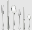 Christofle America 36-piece silver-plated flatware set is made for 6 guests and comes with a storage box. Contains 6 of each of the following: Dinner Fork, Dinner Knife, Tablespoon, After Dinner Tea Spoon, Dessert Fork, Dessert Knife.
