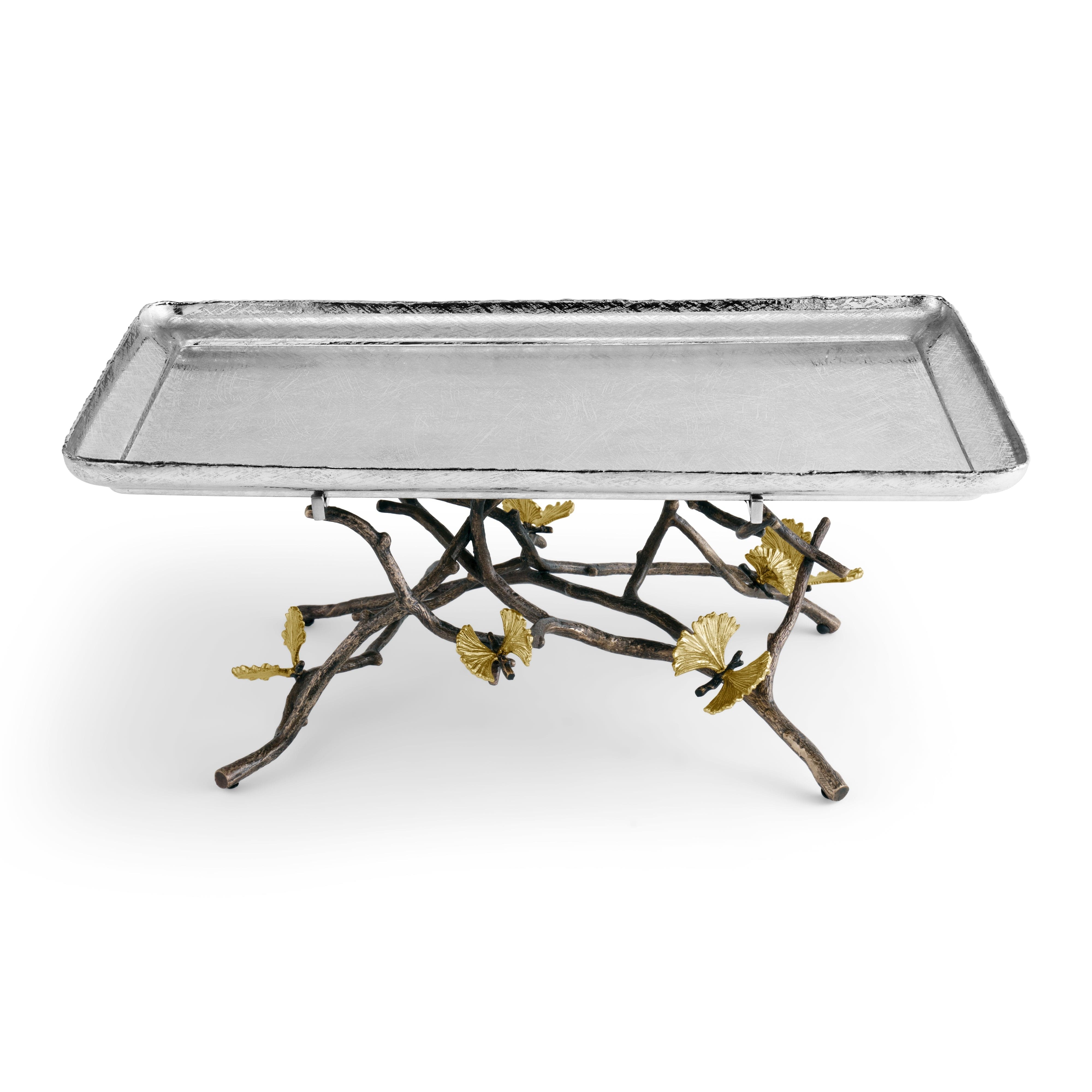 The Butterfly Ginkgo Collection celebrates the representation of flora as fauna. Michael's fascination with a particular type of ginkgo tree , the Ginkgo Biloba, or "Butterfly Ginkgo", which grows with a double leaf reminiscent of a butterfly's wings, gave rise to a fantasia image of the plant. Executed at the highest level of handcraftsmanship, each piece is rendered in solid brass with hand etched cocoon-shaped vessels. The pieces in the collection are a tour de force of the handcrafted process, capturing the poetic spirit that is so deeply indicative of Michael's work.