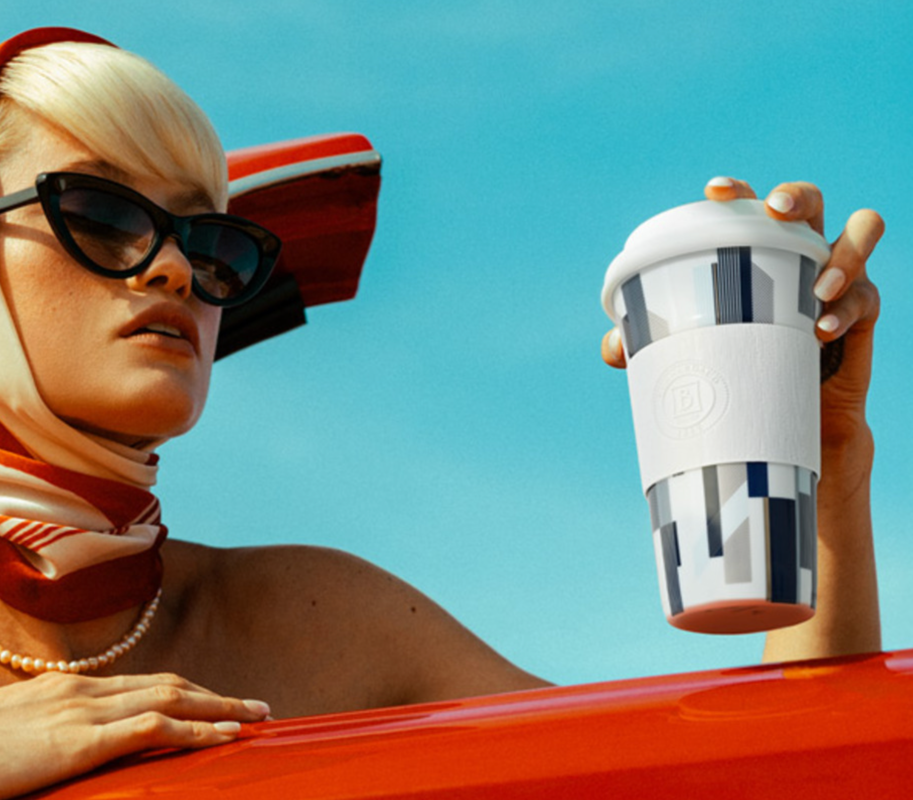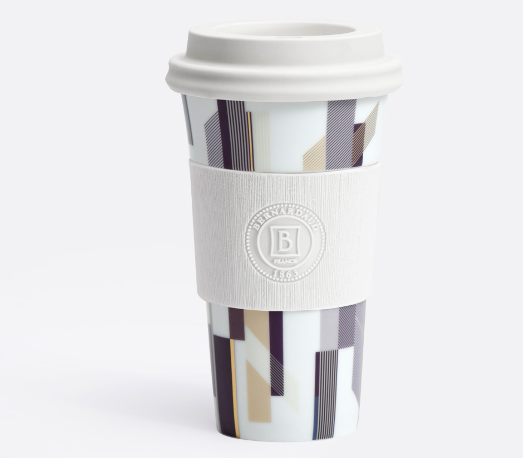 The Bernardaud Charly Nomad Mugs combine convenience, a contemporary look, and refined design. These mugs are crafted to accompany you wherever your day leads. The Porcelain allows these mugs to retain the temperature of your hot or cold beverage, preserving the delicate taste of your drink. The silicone sleeve and lid provide durability and protection, resisting heat and cold. Made in France.