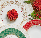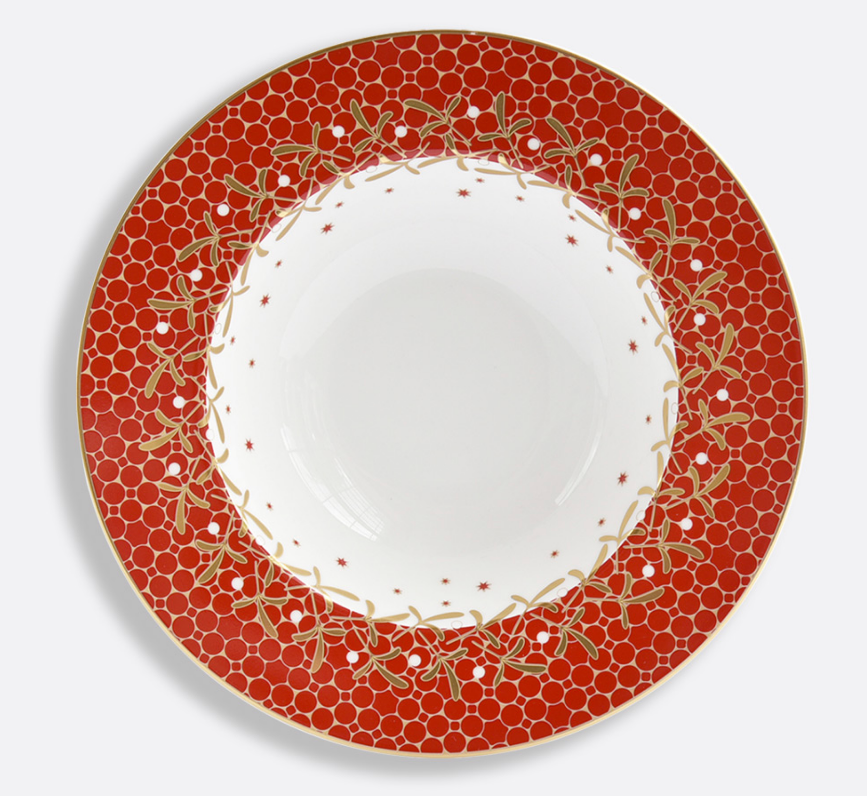 Bring festive elegance to every course this Holiday Season with the Bernardaud Noël Rim Soup Plates. This holiday soup bowl features graceful “high wing” bright red rims and a stunning Noël design—sparkling stars, champagne bubble motifs, mistletoe accents, and gilded embellishments.