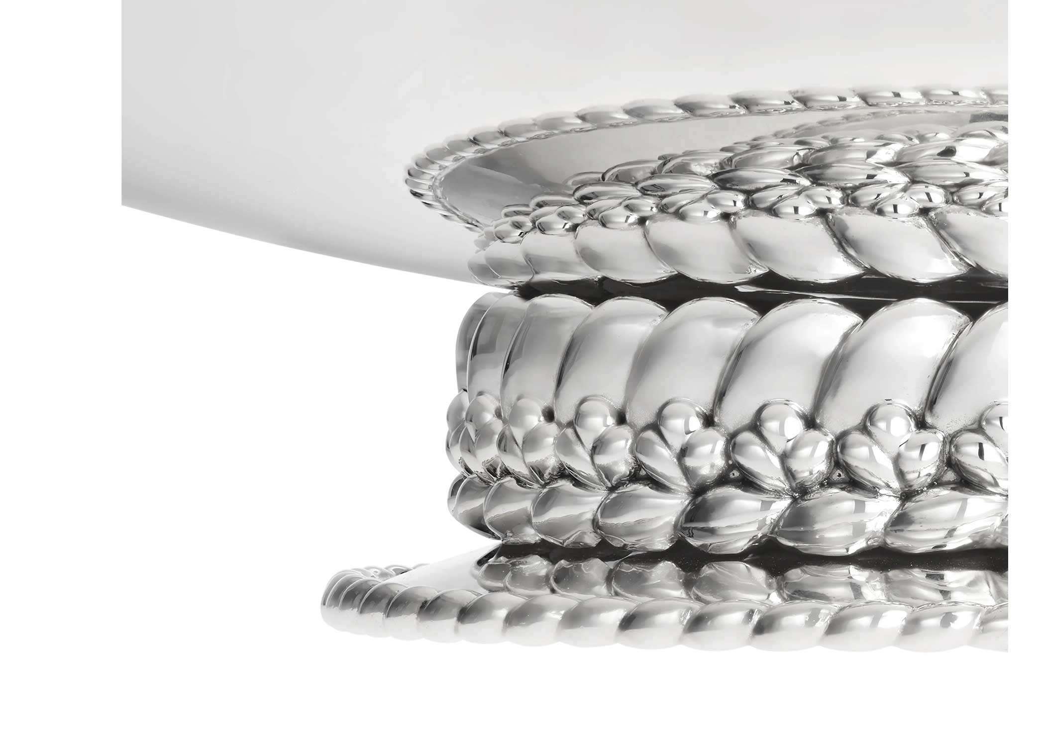 The Christofle Babylone Silver-Plated Centerpiece is a masterpiece of Parisian design and craftsmanship. Its braided base gracefully transitions into a reflective bowl, creating a captivating play of light and shadow. Made from high-quality silver-plated metal, this centerpiece exudes refined elegance. Measuring 3.5 inches tall and 16 inches in diameter, it makes a sophisticated statement without overpowering your table. Perfect as a distinguished gift for weddings or anniversaries, it brings timeless luxury to home decor.