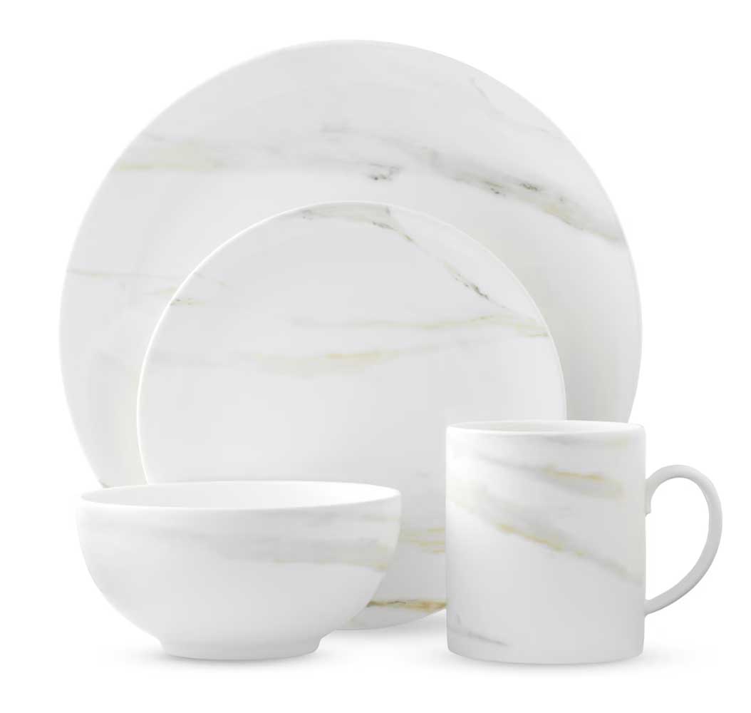 Experience the elegance and artistry of Wedgwood's Vera Wang Venato Imperial 4-Piece Place Setting. Inspired by Italian quarries, each piece showcases the organic and luxurious beauty of unrefined marble, perfect for the Traditionalist. Featuring a contemporary pattern, this set includes a Dinner Plate (10.75"), Salad Plate (8"), Soup/Cereal Bowl (2.75"H x 5.75"D), and Mug (15oz), designed for effortless hosting. Venato Imperial is another favorite among our bridal registry dinnerware. Dishwasher and microwave safe.