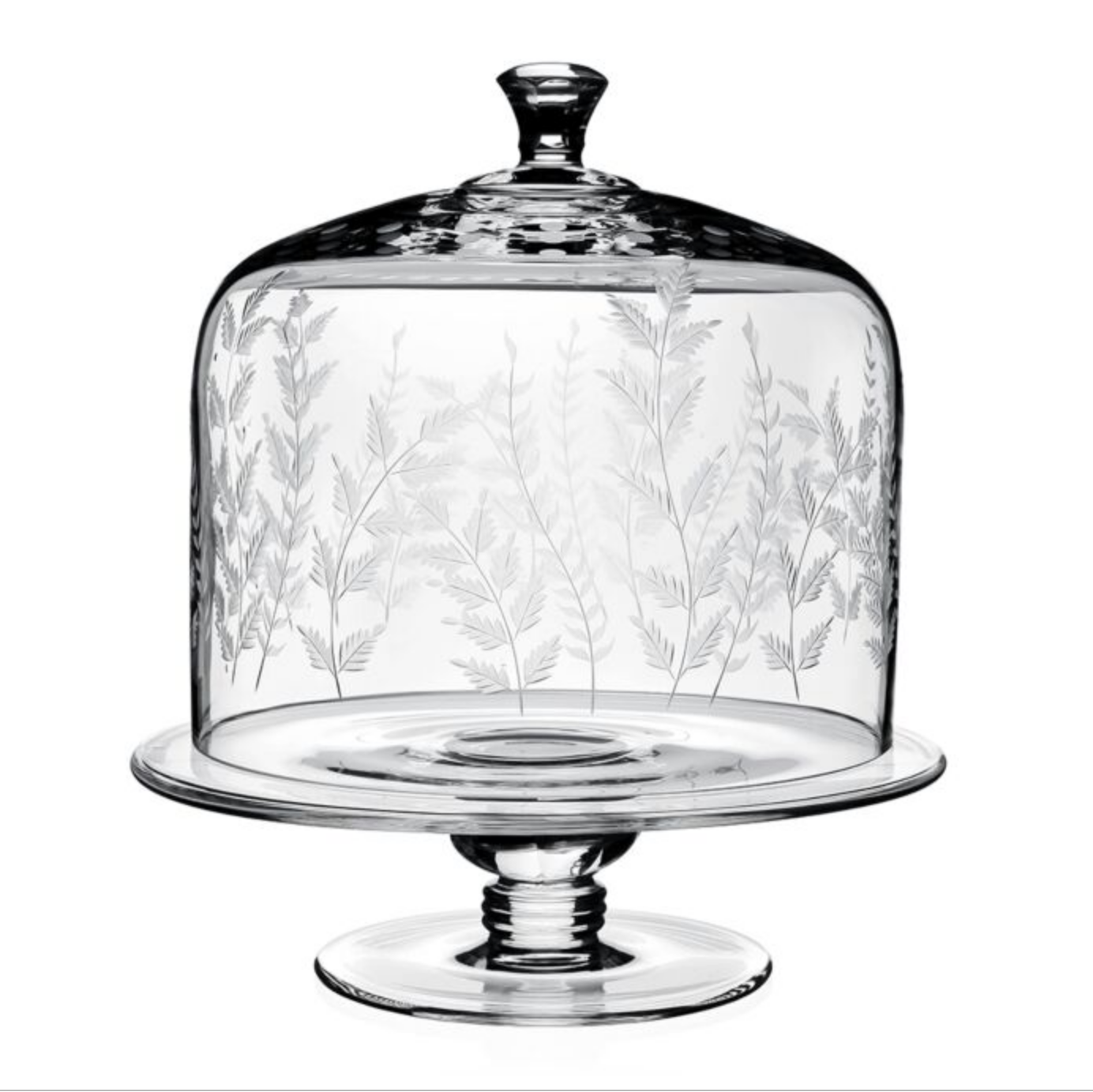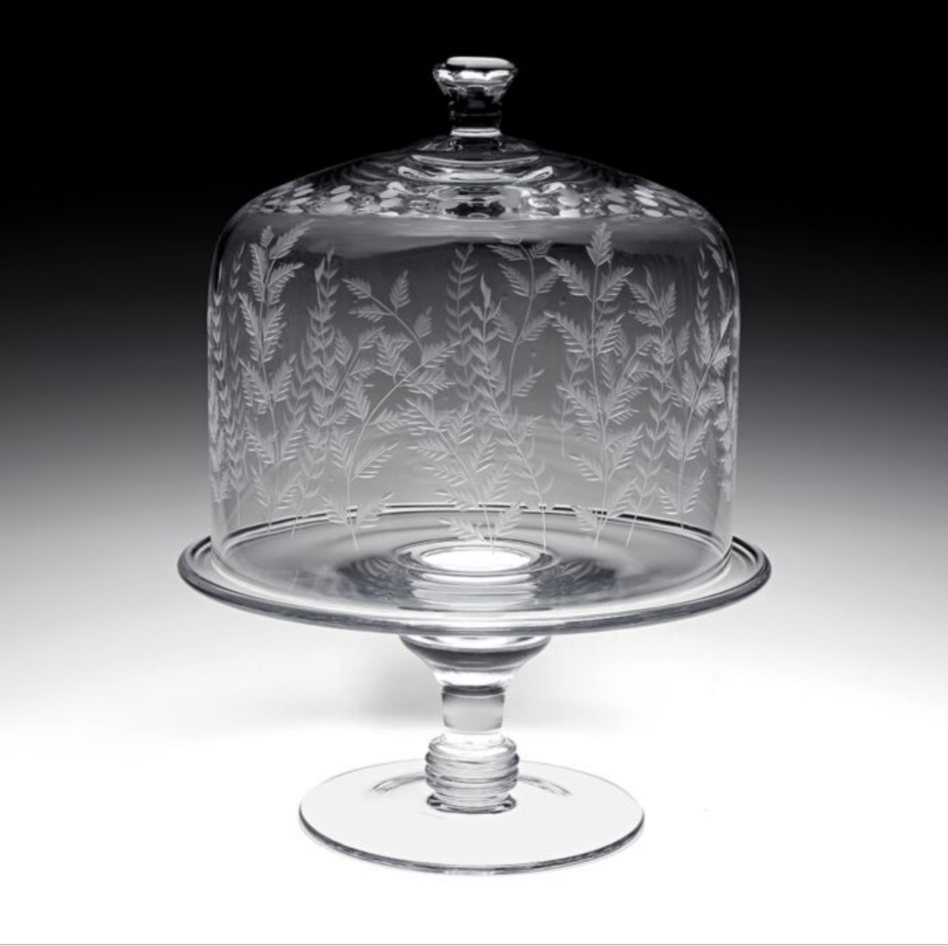 The Fern Cake Stand and Dome set is a beautiful way to present your cake, fruit, or pastries? The Cake stand is the perfect height for the table and with the Fern design Cake Dome, it makes a dramatic statement.