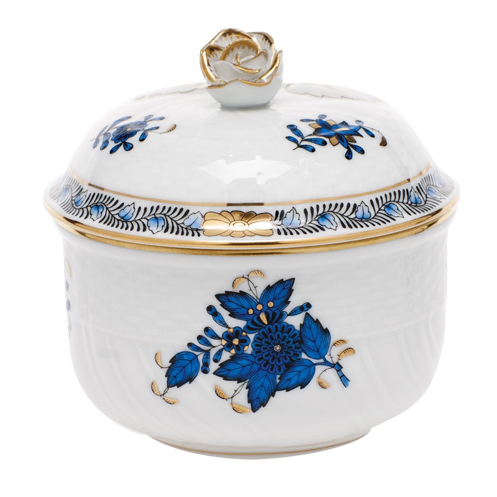 Herend Herend Chinese Bouquet Black Sapphire Covered Sugar with Rose