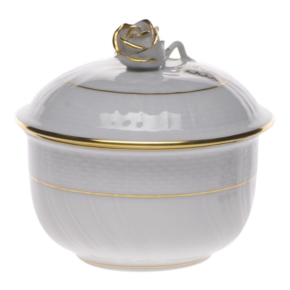 Herend Golden Edge Covered Sugar with Rose 4oz