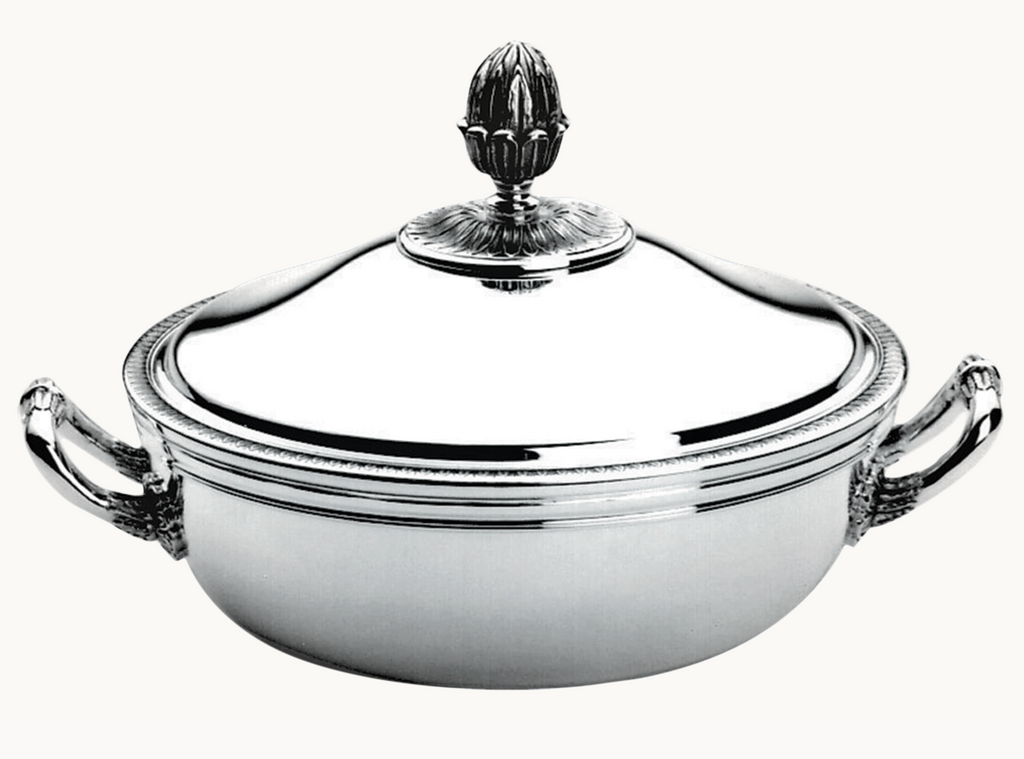 The Christofle Malmaison vegetable dish with a lid, decorated with a refined frieze of palm and lotus leaves, is inspired by the Château de la Malmaison, once home to Napoleon and Josephine. Its balanced design offers both elegance and functionality, perfect for serving vegetables with timeless sophistication. This silver-plated serving dish with a lid adds elegance to the table. It is a versatile piece for people who like entertaining and home cooking.