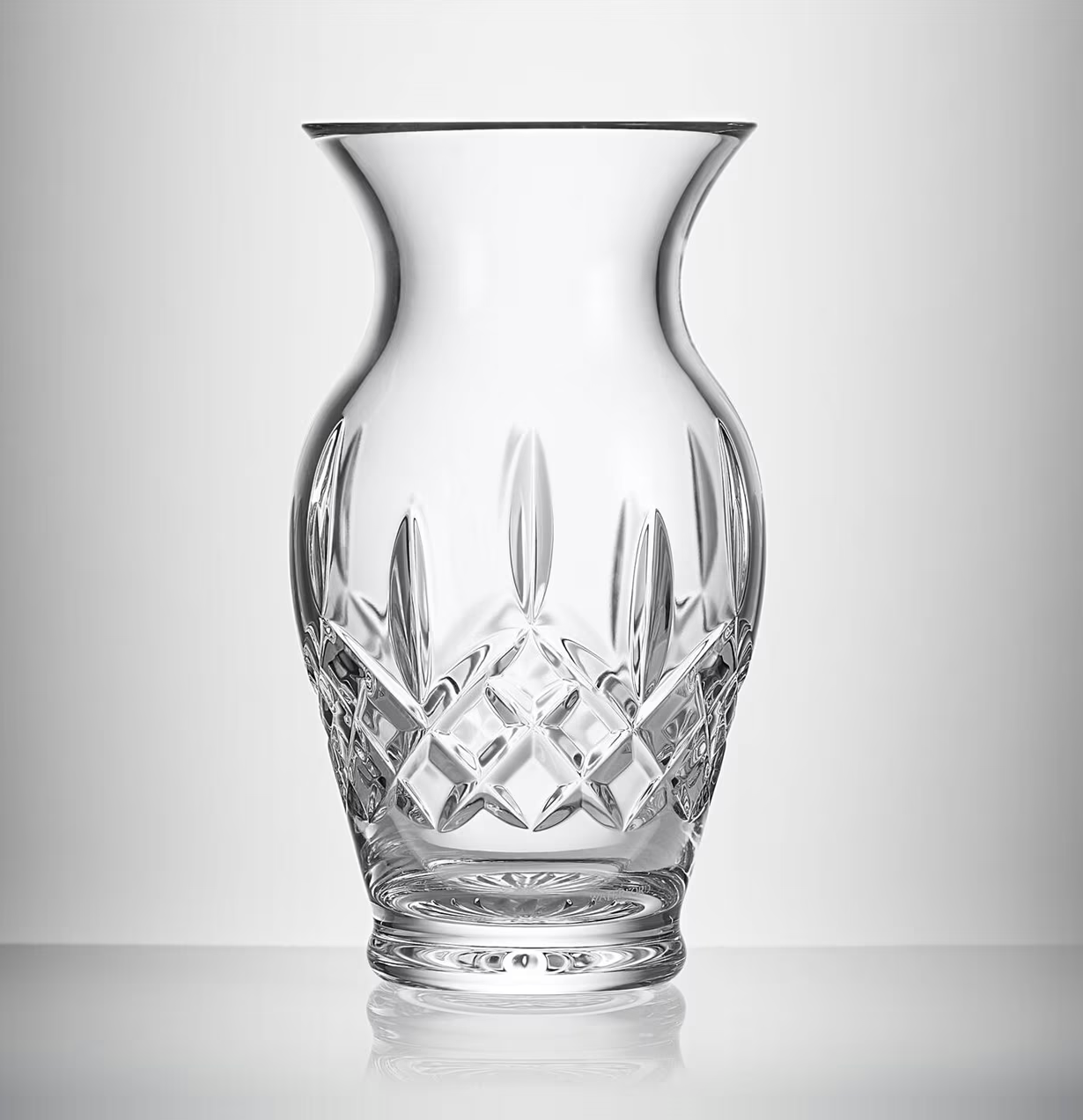 Made with the signature diamond and wedge cuts of the Waterford Lismore pattern, this fine crystal vase exudes brilliance and clarity. Its sloping neck and sturdy weight make it perfect for showcasing roses and cut flowers. Expertly crafted by hand, you won't find a better vase to display your favorite blooms. This vase is an ideal gift for engagements, weddings, housewarmings, hostesses, birthdays, Mother's Day, or to bring a smile to a loved one's face.
