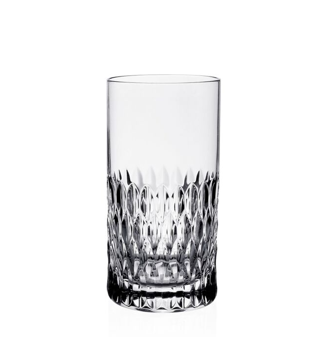 The William Yeoward Merle Highball Tumblers are crafted in finely hand-cut crystal with signature olive-shaped geometric detailing that creates a luminous glow when filled. Designed for cocktails, sparkling mixers, and classic highballs, this luxury crystal glass adds refined style and texture to any bar or entertaining setting.