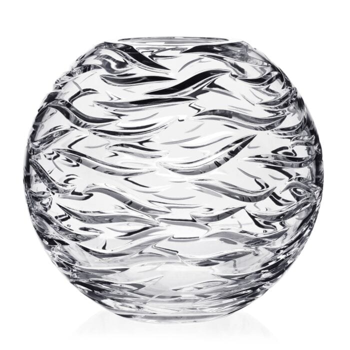 The William Yeoward Oceania Centrepiece Rose Bowl 12" / 30cm features cuts and designs resembling waves. It symbolizes the constant movement of the seas and the sparkling light of waves breaking on the seashore. Each piece in this collection is individually mouthblown and the waves are deeply hand-cut by skilled craftspeople. The Centrepiece Rose Bowl will make a substantial impact displayed in a foyer or used as a centerpiece on a table or sideboard.