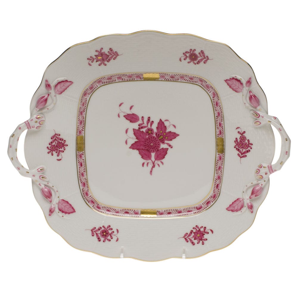 Herend Chinese Bouquet Raspberry Square Cake Plate with Handles