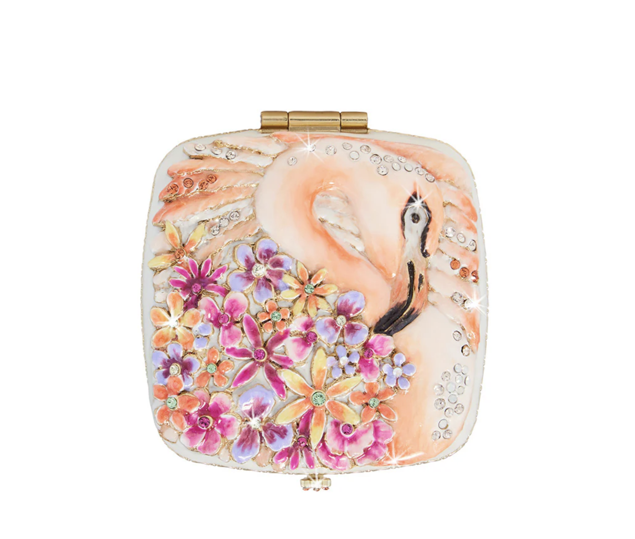 Jay Strongwater Lily Floral Flamingo Compact