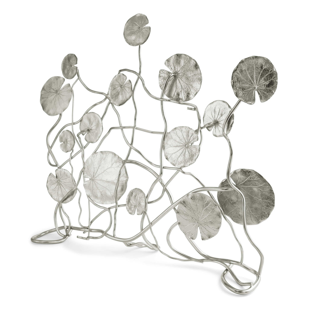 Michael Aram's Lily Pad Screen reflects his sculptural work as it applies to nature. The piece is also a celebration of craft as no two pieces are ever exactly the same. This piece captures a sense of spontaneity through the quickness of the sculpting and through the handmade process.